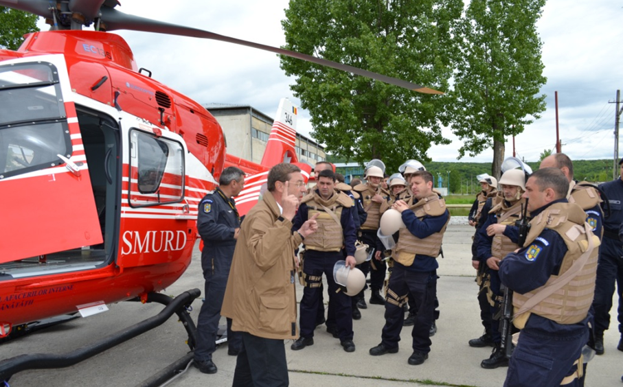 În ultima zi a cursului toţi ofiţerii şi subofiţerii participanţi au avut ocazia de a executa un zbor de aclimatizare cu un elicopter al Ministerului Afacerilor Interne pilotat de domnul comandor Dumitru Eugen.