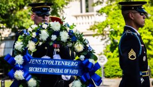 Înainte de întâlnirea sa cu secretarul Austin, domnul Stoltenberg a participat la o ceremonie de depunere a coroanelor de flori la Cimitirul Național Arlington.
