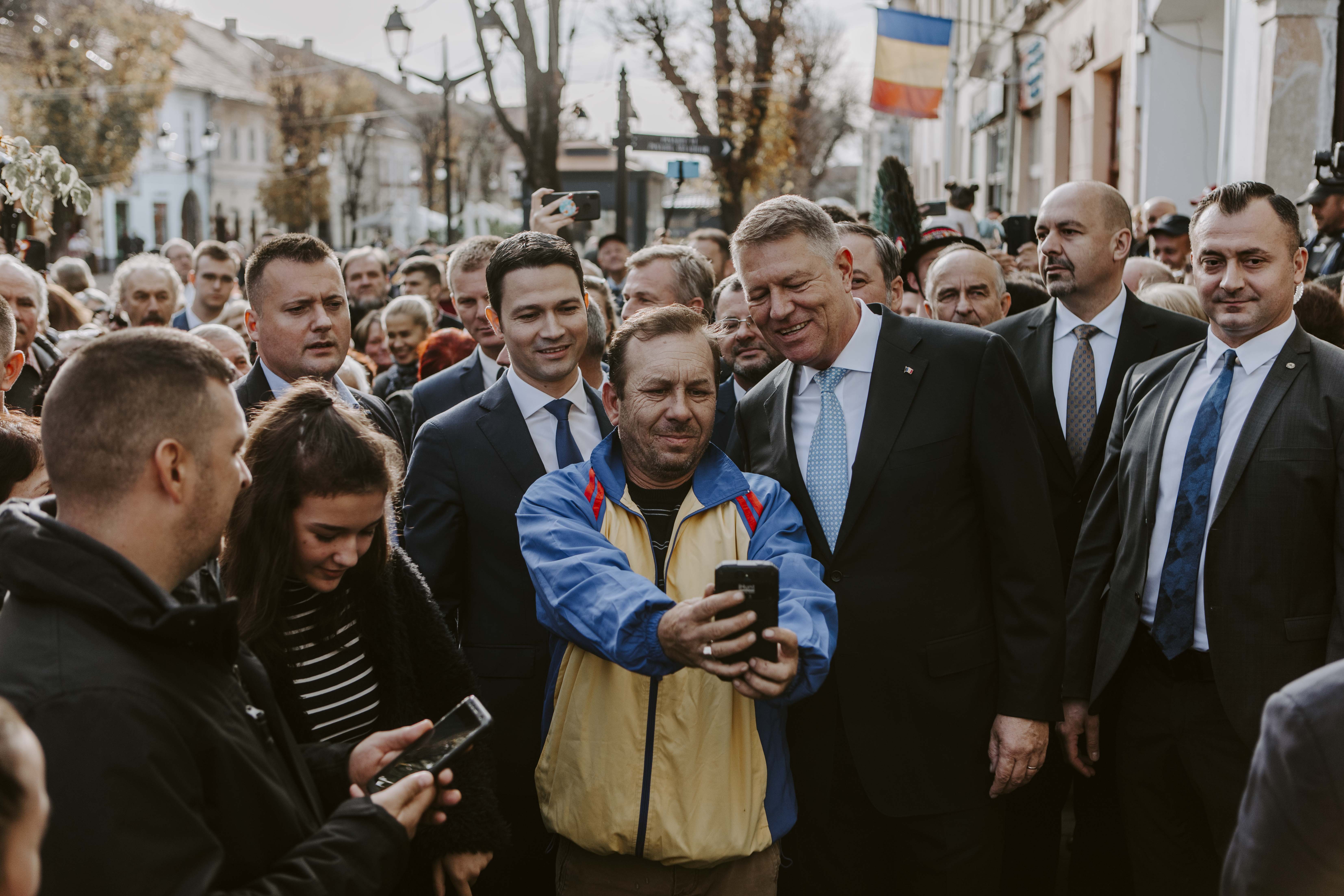 Klaus Iohannis a luat orașul la pas, dialogând cu cetățenii și răspunzând urărilor de bun venit: ”Bine v-am găsit, mi-a fost dor”. Bistrițenii s-au fotografiat cu șeful statului sau i-au cerut autografe pe cea mai recentă carte.