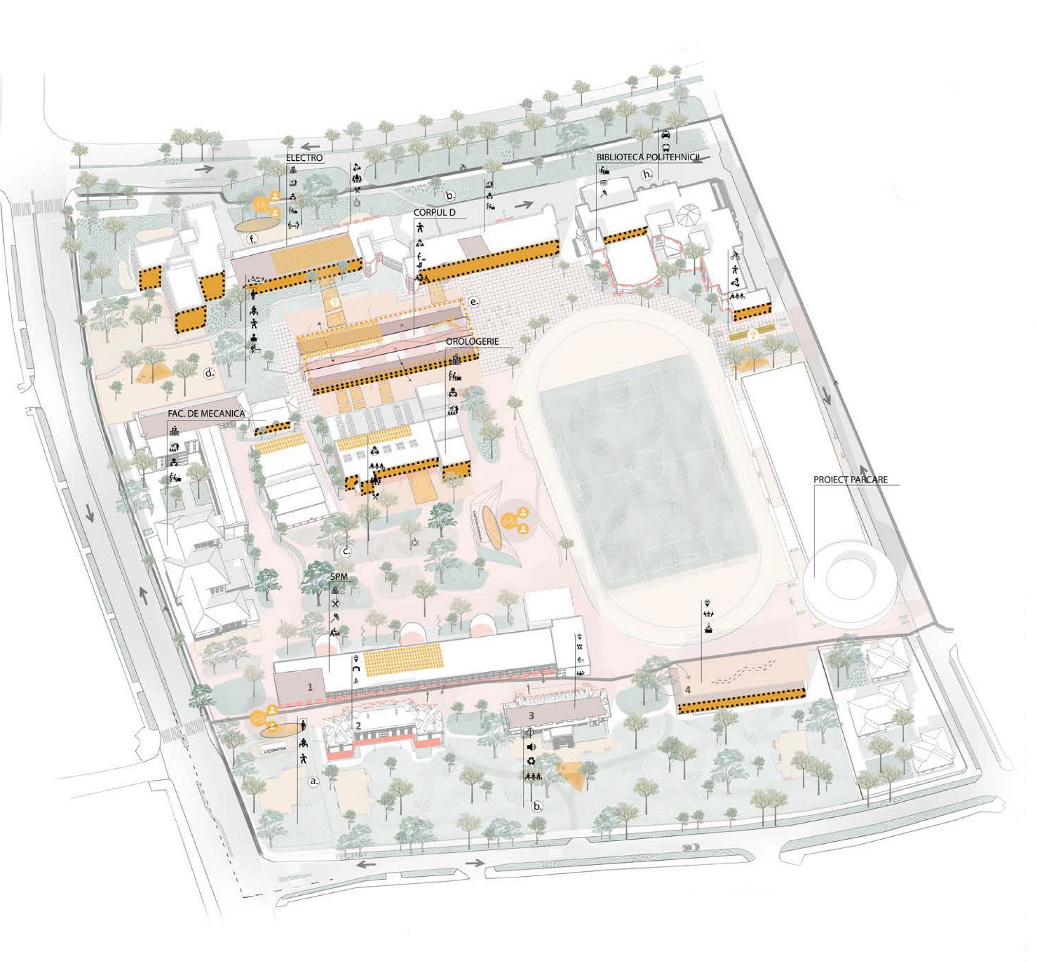 Proiectul de urbanism stabilește două direcții transversale fundamentale prin temele „smart” și „verde” necesare a fi aplicate fiecărei propuneri. Propunerile vizează intervenții de la nivelul întregului campus reunit, inclusiv zona căminelor, practic întregul areal între Bulevardul Mihai Viteazu și Strada Daliei, pentru a detalia apoi intervenția pe cvartalul delimitat de străzile Mihai Viteazu, Traian Lalescu, Victor Babeș și Bd. Vasile Pârvan, cu includerea infrastructurilor UPT până la strada Petre Râmneanțu și intervenții de detaliu pentru creșterea calității spațiilor publice. Studenții au abordat trei scenarii distincte. Primul dintre acestea abordează situația în care prezența studenților în campusul universitar este restrânsă, având în vedere funcționarea în sistem hibrid și presupune inclusiv o renunțare la elementele construite improprii în raport cu clădirile valoroase din perspectivă patrimonială, cu investiții minime. Al doilea scenariu abordează situația păstrării parametrilor actuali din punct de vedere al numărului de studenți, așadar o mai bună utilizare a infrastructurii existente și a spațiilor publice, evidențiind posibilitățile de utilizare a tuturor spațiilor în limitele infrastructurii actuale. Scenariul al treilea abordează situația creșterii numărului de studenți și introducerea unor facilități utile pentru comunitate, cu intervențiile cele mai ample în acest scenariu, mizând pe o dezvoltare smart și sustenabilă în limitele potențialului maxim de creștere a infrastructurii.