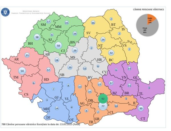 Pe site-ul Ministerului Muncii, Familiei, Tineretului şi Solidarităţii Sociale, a fost publicată Lista căminelor pentru persoanele vârstnice licențiate la data de 13.03.2025. 789 de cămine pentru persoanele vârstnice sunt disponibile în toate județele țării, atât în sectorul privat, cât și în cel public, situate atât în orașe, dar și în zonele rurale. În județul Dâmbovița sunt 15 cămine, în Prahova 17 iar în Argeș 13.