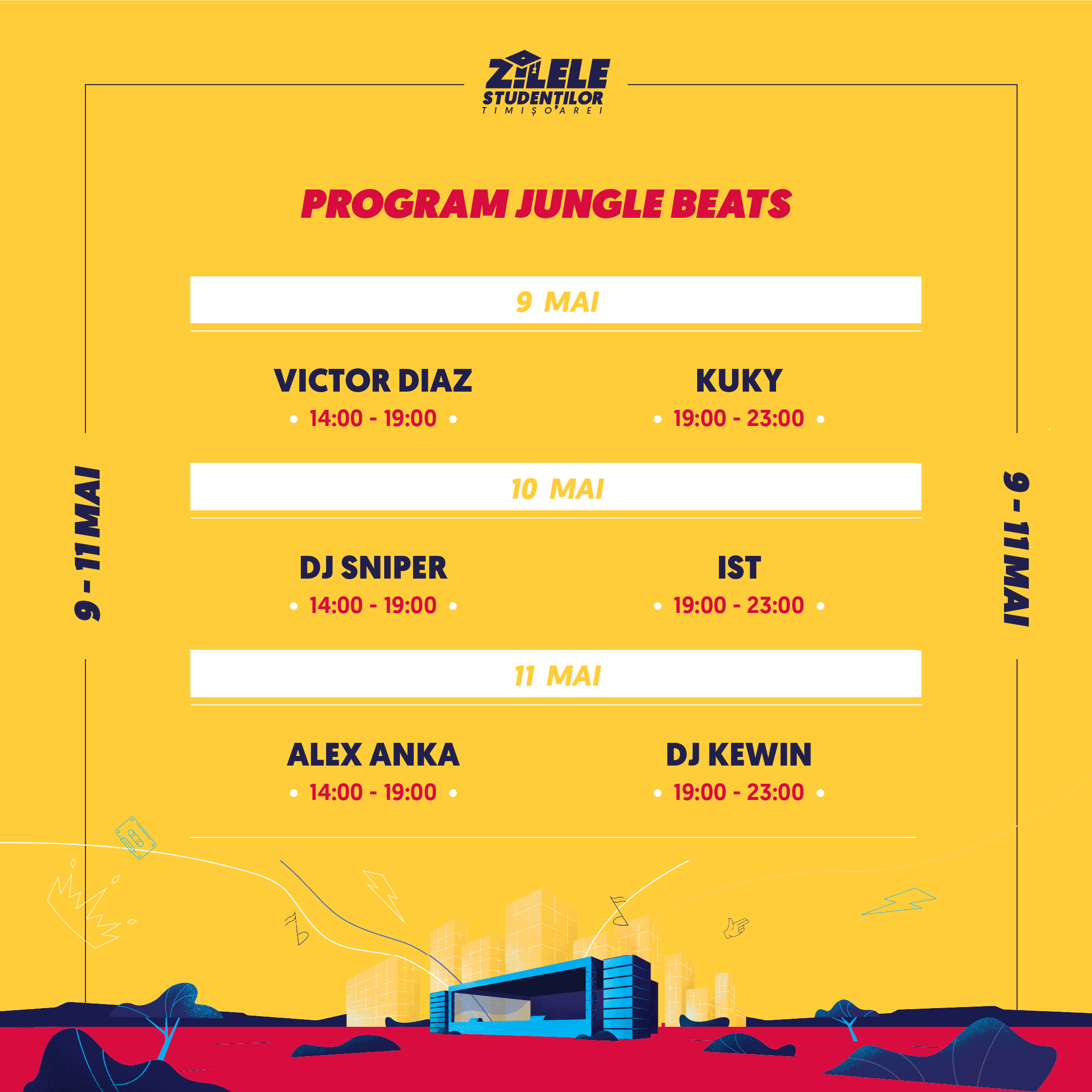 – 14:00 – 23:00 – College Vibes cu: Victor Diaz | KuKy – în spațiul verde dintre căminele C3 și C4