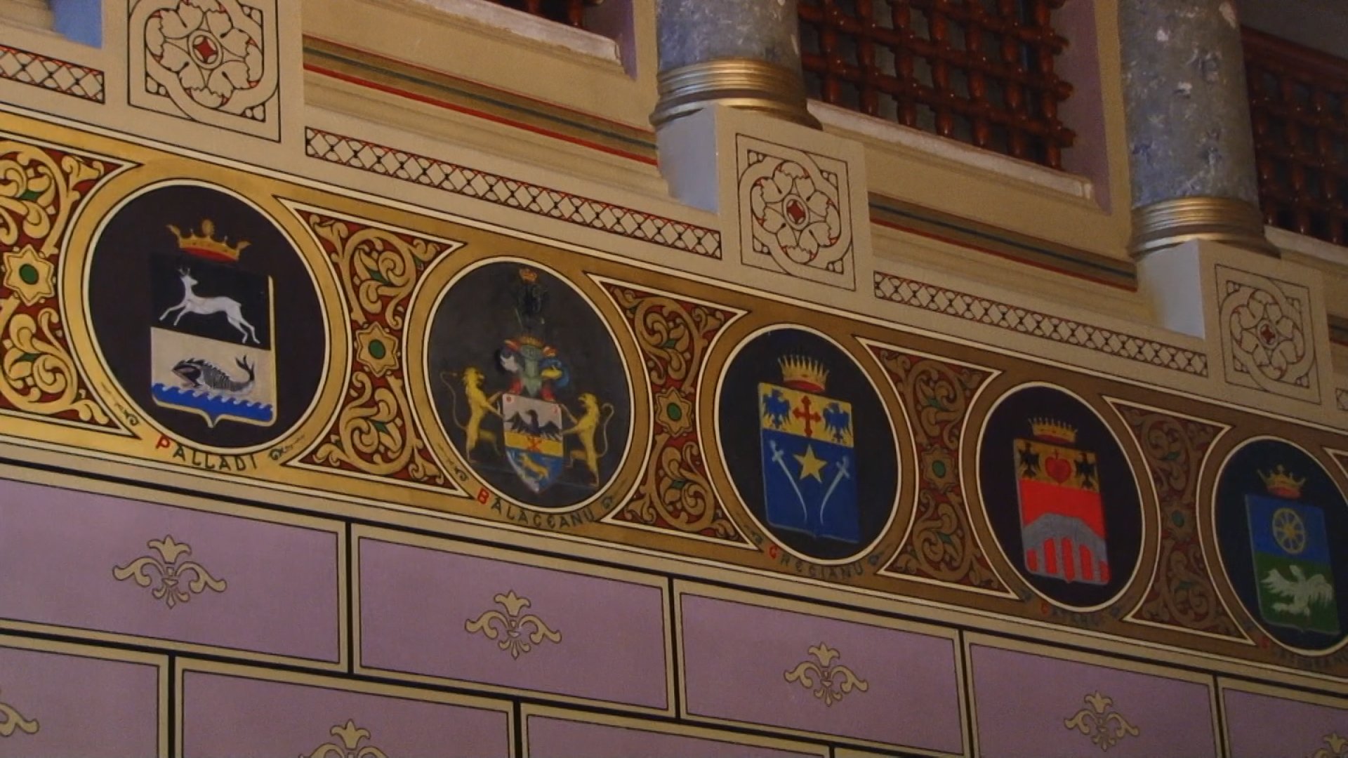 Castelul posedă o colecție de heraldică reprezentând blazoanele familiilor de boieri încuscriți cu cantacuzinii și o friză de picturi votive cu iluștrii membri ai familiei Cantacuzino din ramura munteană.