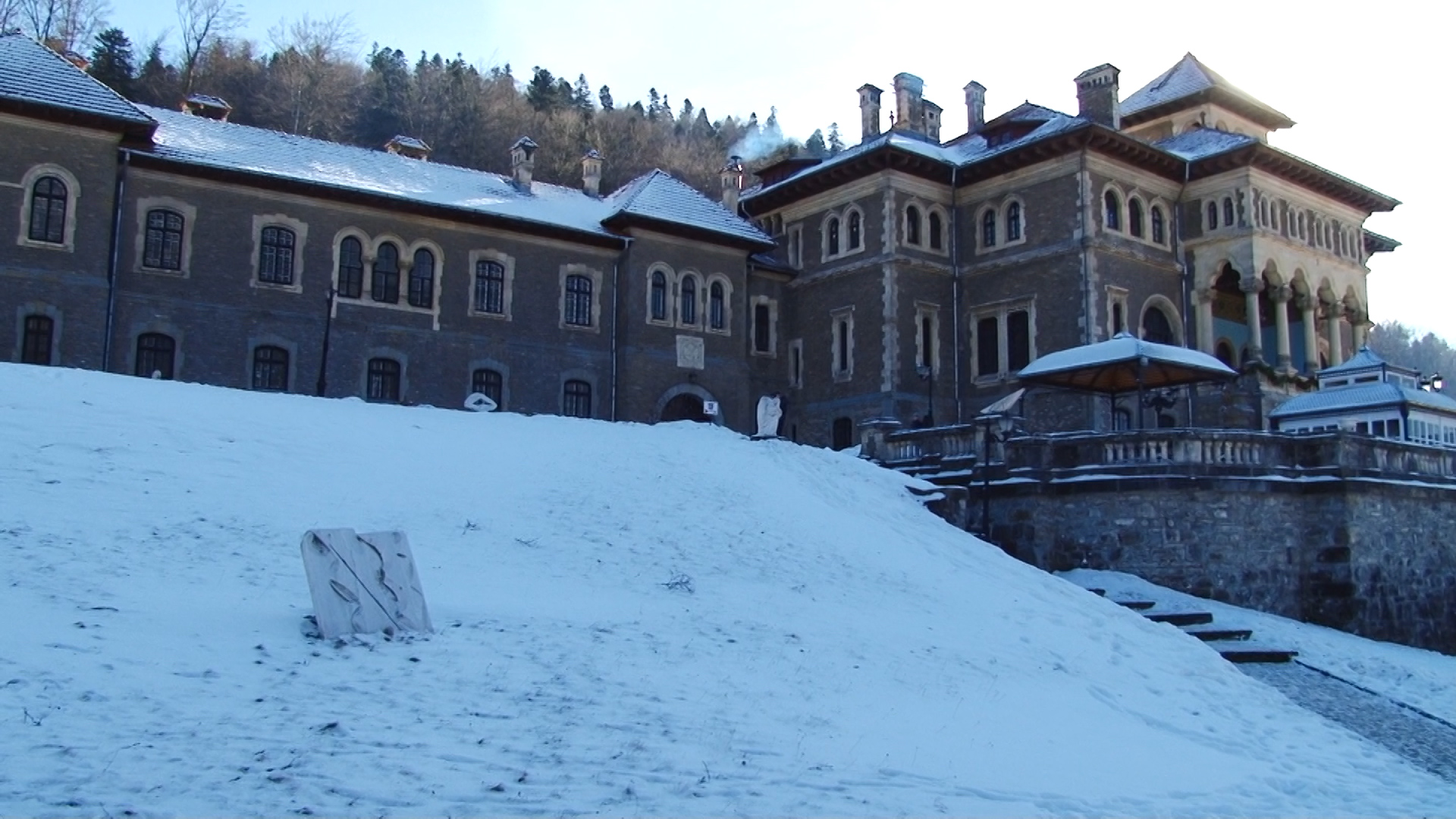 “ Ne aflăm în Castelul Cantacuzino din Buşteni, fostă reşedinţă a unui prinţ, pe care România la avut, şi anume prinţul Gheorghe Grigore Cantacuzino, o personalitate extrem de valoroasă atât pe plan politic cât şi social, el fiind printre altele cel mai bogat român al acelei vremi, era şi primul român cu doctorat în drept al Universităţii Sorbona din Paris. Acum suntem în salonul unde prinţul servea masa, s-au mai văzut biblioteca, biroul să, sau sala de bal, iar la intrare este salonul în care prinţul îşi primea oaspeţii, Arhitectura castelului aparţine lui Grigore Cerchez, cel mai mare architect al vremii, construit în stil neoromânesc, cu elemente brâncoveneşti. Mobilierul lipseşte însă restul elementelor sunt originale.” a spus ghidul castelului Cantacuzino, Alin Apostu.