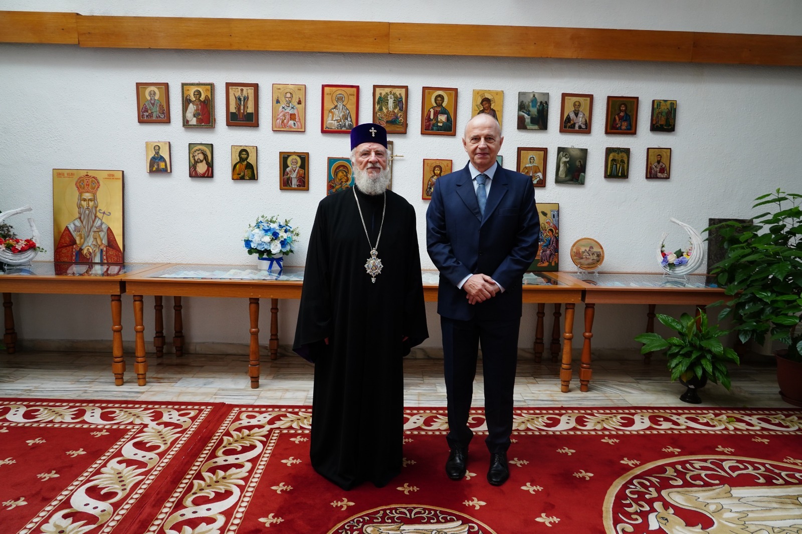 Excelența Sa, Domnul Mircea Geoană, Secretar General Adjunct al NATO a fost primit la Reședința eparhială, luni, 11 septembrie 2023, de Înaltpreasfințitul Părinte Mitropolit Nifon, Arhiepiscopul Târgoviștei și Exarh patriarhal.