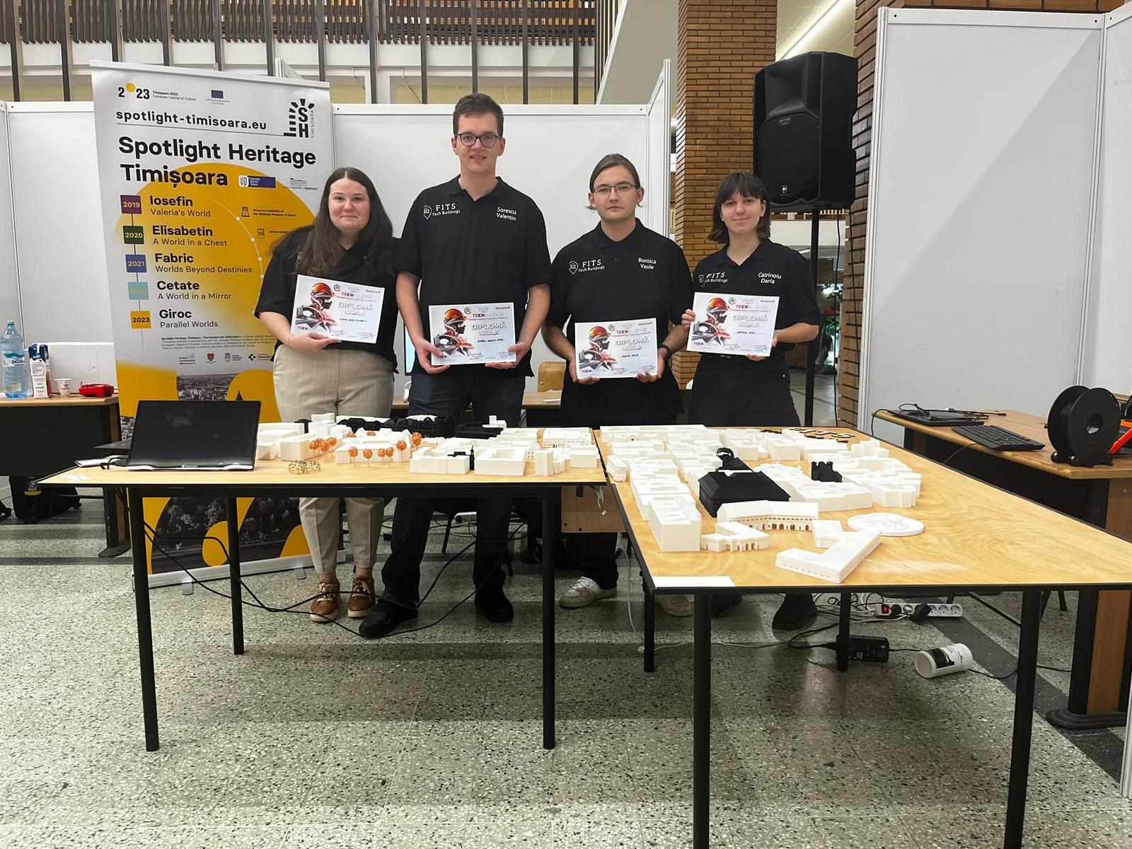 - Premiul 3 – Echipa „Fountains in the sea (F.I.T.S)” compusă din Boroica Vasile (Facultatea de Electronică, Telecomunicații și Tehnologii Informaționale, specializarea Electronică Aplicată, Anul 4), Catrinoiu Daria (Facultatea de Arhitectură și Urbanism, Mobilier și Amenajări Interioare, Anul 3), Lovasz Karla-Elisabeth (Facultatea de Mecanică, masterandă, Sisteme Robotice cu Inteligență Artificială, Anul 1), Tănase Ioana Antonia (Facultatea de Arhitectură și Urbanism, masterandă, Tendințe, Mobilier și Tehnologii noi în Arhitectura de Interior, Anul 2), Sorescu Valentin-Petru (Facultatea de Electronică, Telecomunicații și Tehnologii Informaționale, masterand, Tehnologii Multimedia, Anul 1). Proiectul prezentat a fost o macheta realizată prin imprimare 3D a celor mai importante clădiri istorice din centrul orașului Timișoara. Macheta a devenit o hartă interactivă tridimensională, prin care s-a utilizat o combinație între tehnologie, artă și istorie pentru a evidenția clădirile și obiectivele istorice importante ce au prins viață prin intermediul tehnologiei IoT.