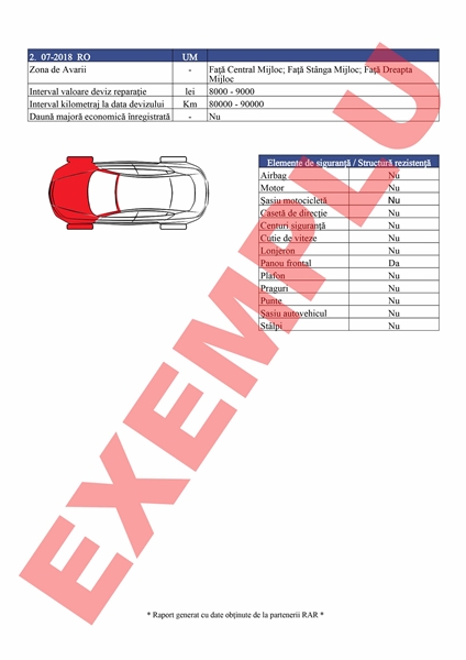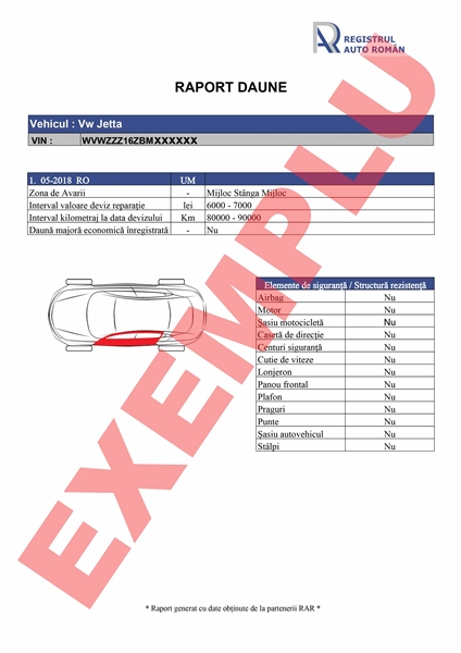 Astfel, la interogarea prin aplicaţia Istoric Vehicul, împreună cu informaţiile oferite gratuit de RAR (de exemplu valoarea indicată de odometru) se precizează şi faptul că pentru acel vehicul există disponibil un istoric de daune, care poate fi oferit contra cost.