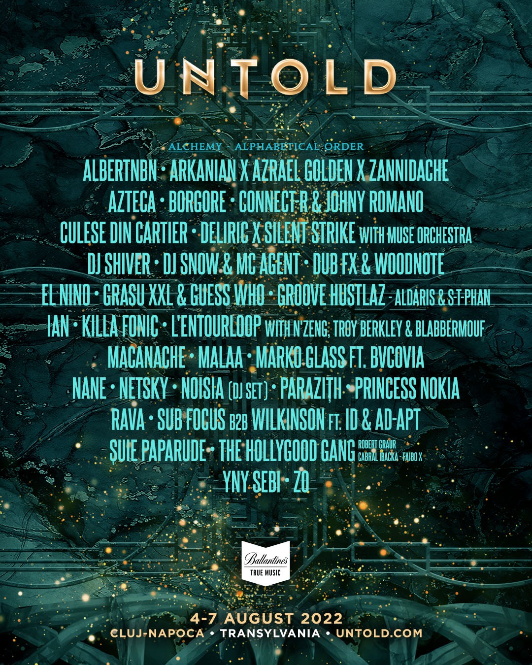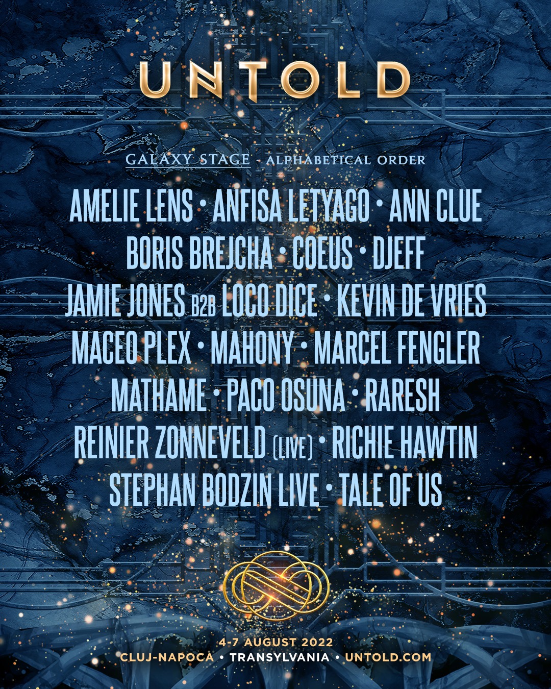 Organizatorii UNTOLD, una dintre cele mai frumoase experiențe de festival din lume, anunță noi artiști care vor ajunge în Cluj-Napoca pe scenele secundare, în perioada 4-7 august 2022. Anfisa Letyago, Coeus, Kevin De Vries, Marcel Fengler, Paco Osuna, Raresh și Tale of Us completează line-up-ul de la scena Galaxy, casa techno a festivalului UNTOLD. Scena Alchemy reunește în fiecare an cele mai cunoscute nume din trap, hip-hop, rap, grime și drum’n’bass, iar pentru ediția 2022, organizatorii anunță numele artiștilor care vor electriza zilele și nopțile de festival: Culese din Cartier, Paraziții, Ian, Killa Fonic, Șuie Paparude, The Hollygood Gang sau Azteca.