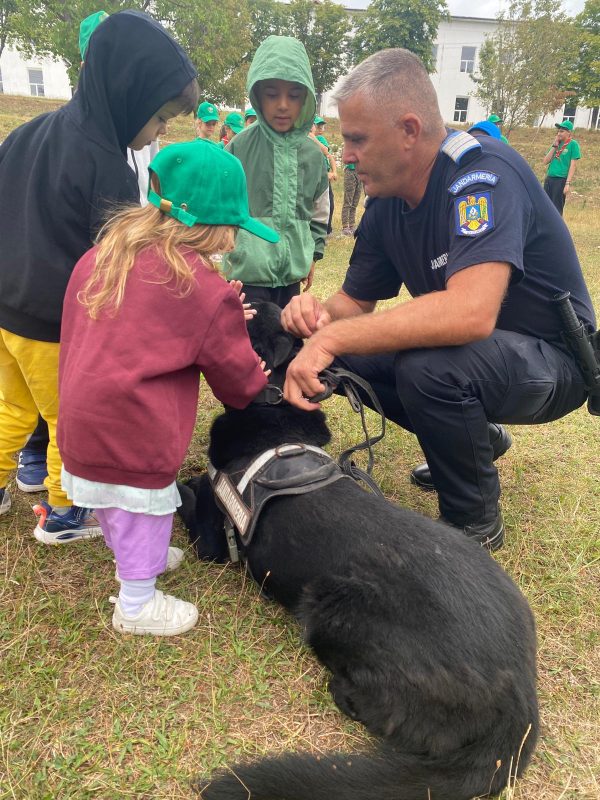 • Demonstrații cu câinele de serviciu – moment extrem de apreciat de cei mici, însoțit de explicații privind dresajul și misiunile canine;