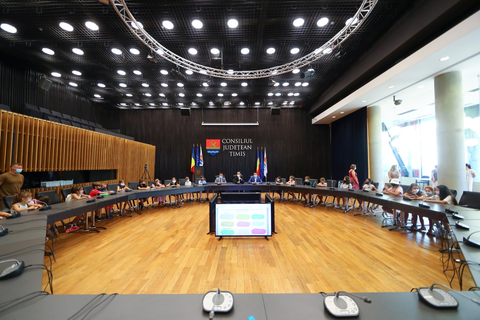 Peste 100 de elevi timișeni au aflat ce înseamnă să fii consilier județean. Copiii au analizat și votat proiecte de Ziua Județului