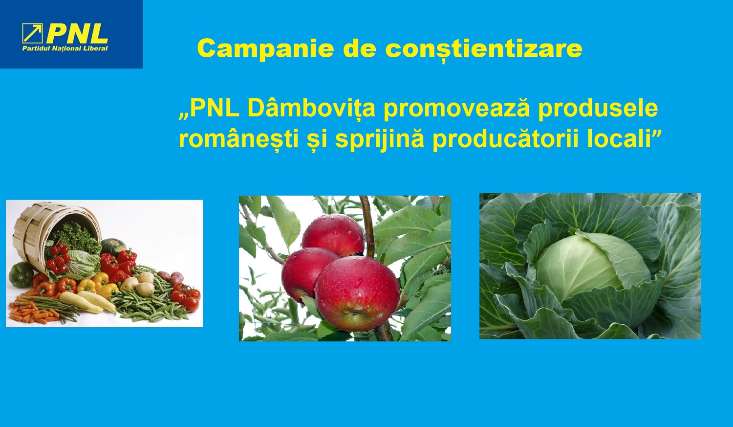 Campania „PNL Dâmbovița promovează produsele românești și sprijină producătorii locali” va consta în acțiuni de informare derulate în localități, distribuirea de produse proaspete cultivate în județul Dâmbovița și transmiterea de mesaje despre impactul achiziționării de produse românești în economia locală și națională.