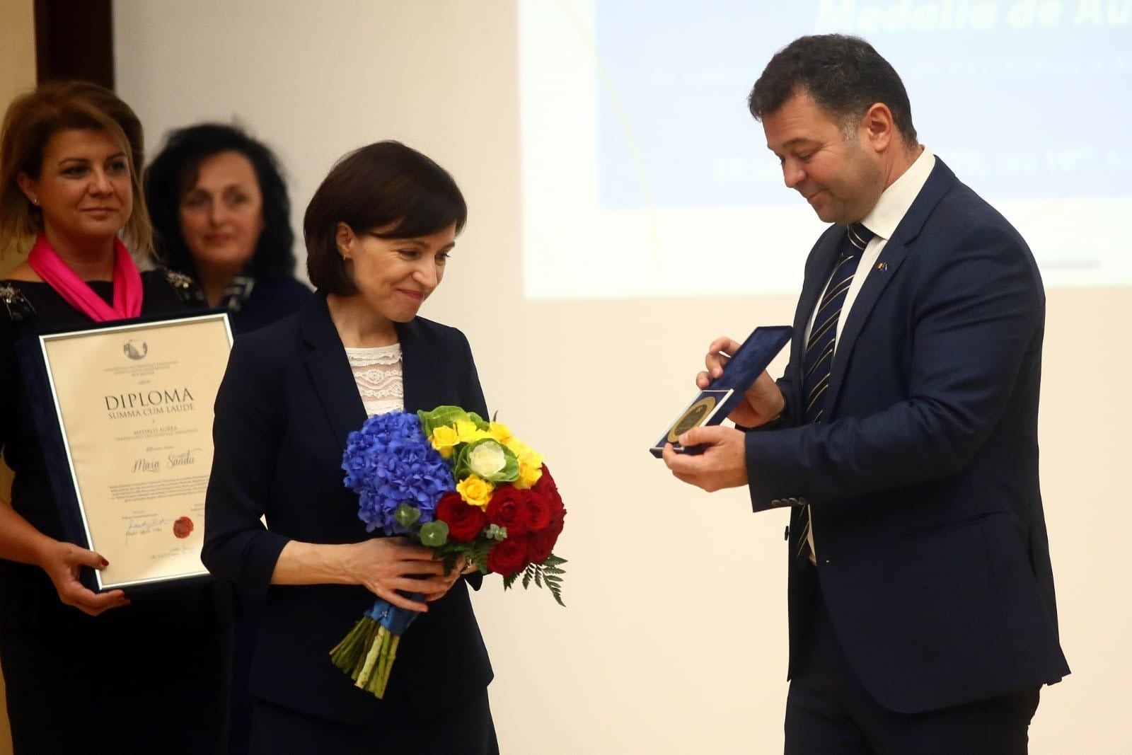 Doamna Maia Sandu a vizitat acum un an UVT, când am avut prilejul de a-i omagia personalitatea, prin conferirea Diplomei și Medaliei de Aur a Senatului UVT, într-o ceremonie emoționantă, în care Prim-ministrul de atunci al Republicii Moldova marca deschiderea unui parteneriat de bun augur cu Timișoara și UVT.