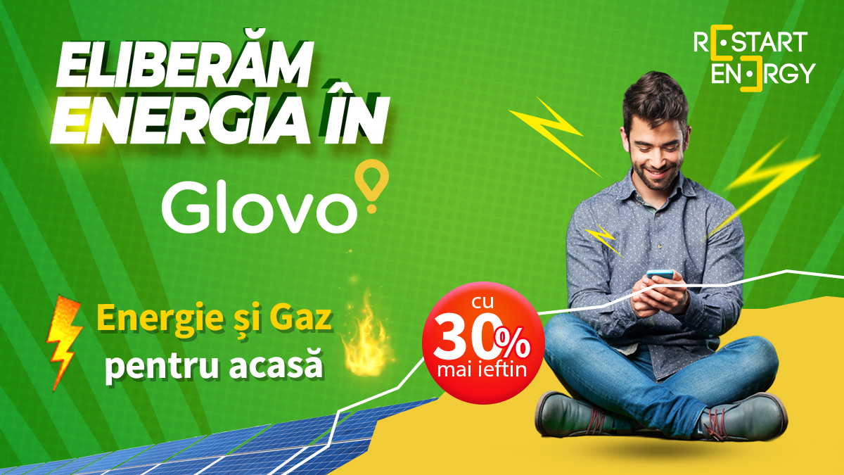 Restart Energy este primul și singurul furnizor român care permite acum consumatorilor din România să achiziționeze energie verde sau gaze naturale prin intermediul aplicației mobile Glovo, sub formă de vouchere valorice, cu 30% mai ieftine.