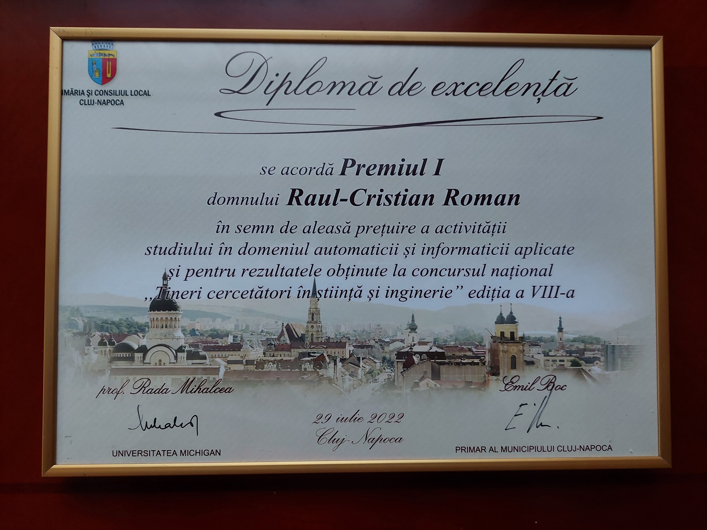 Timișoreanul as.dr.ing. Raul-Cristian Roman, cadru didactic în cadrul Departamentului de Automatică și Informatică Aplicată al Universității Politehnica Timișoara, a obținut premiul I în cadrul competiției Premiile Rada Mihalcea „Tineri cercetători în știință și inginerie” – Ediția a VIII-a.