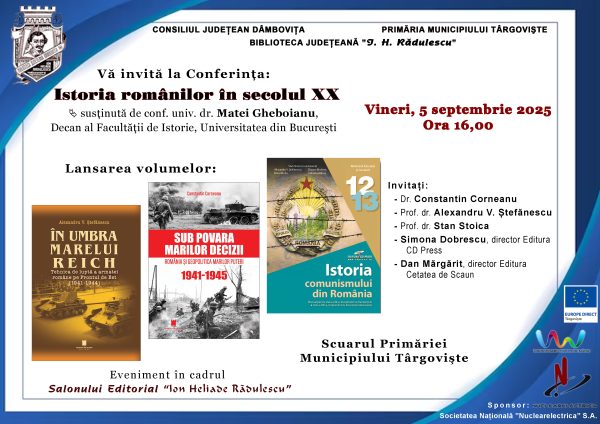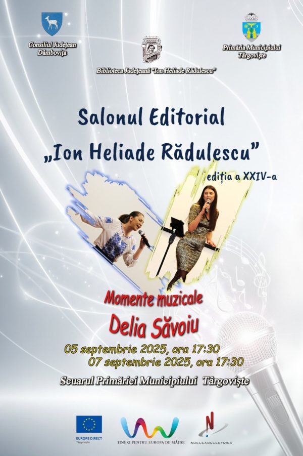 În perioada 5-8 septembrie 2025, în cadrul Zilelor Municipiului Târgovişte, Biblioteca Judeţeană Dâmboviţa organizează a XXIV-a ediţie a Salonului Editorial „Ion Heliade Rădulescu”.