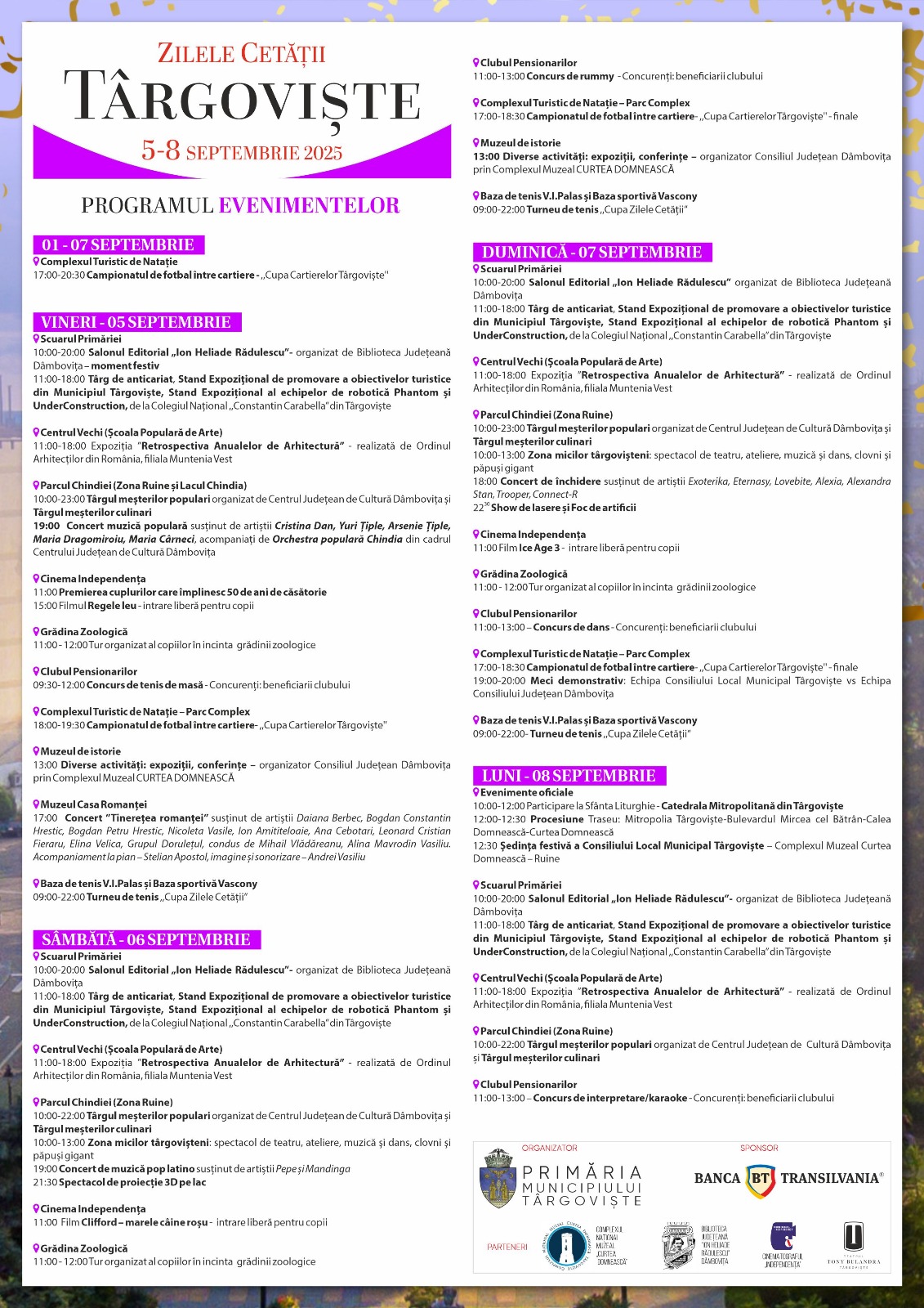 Program Zilele Cetății Târgoviște, 5-8 septembrie 2025