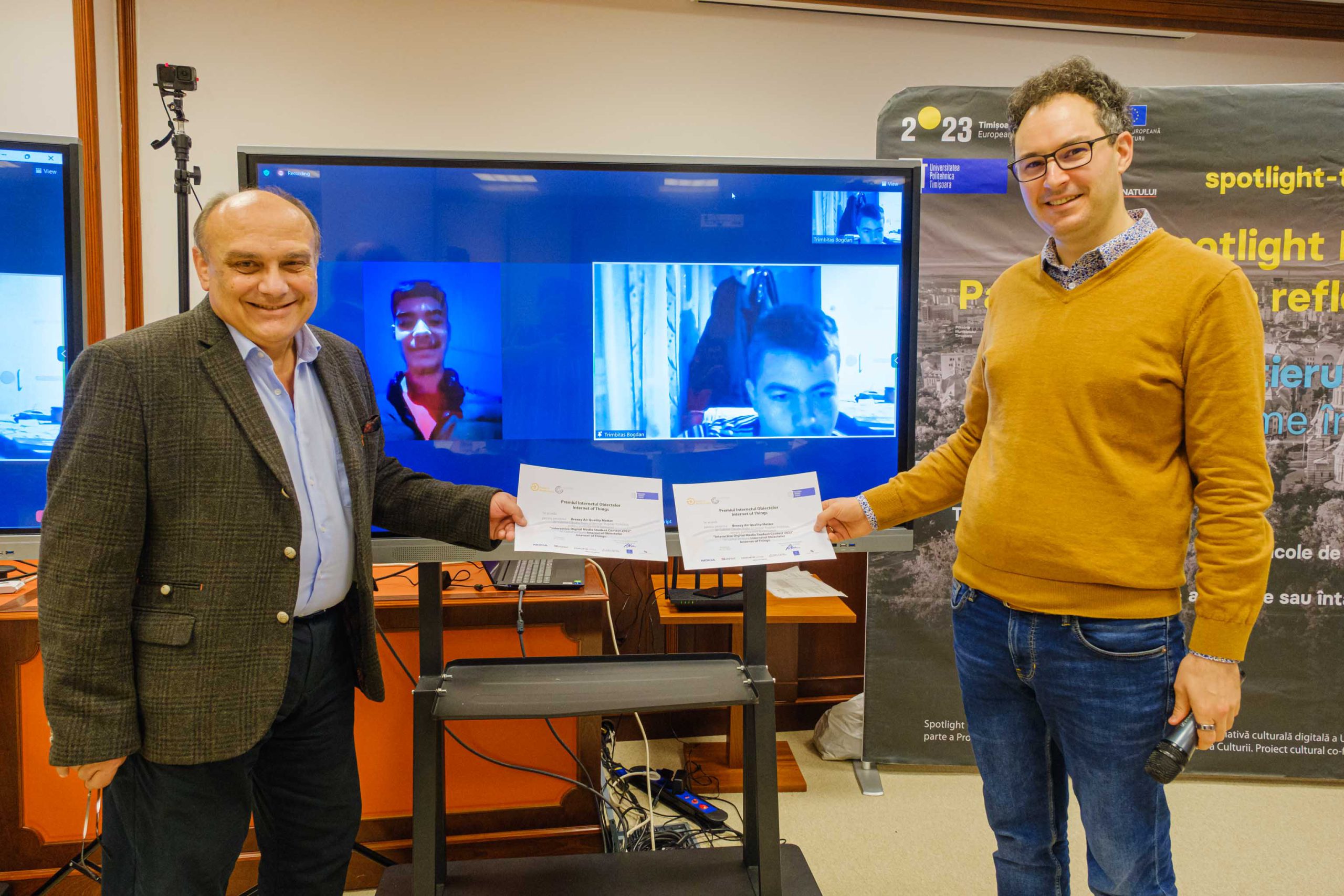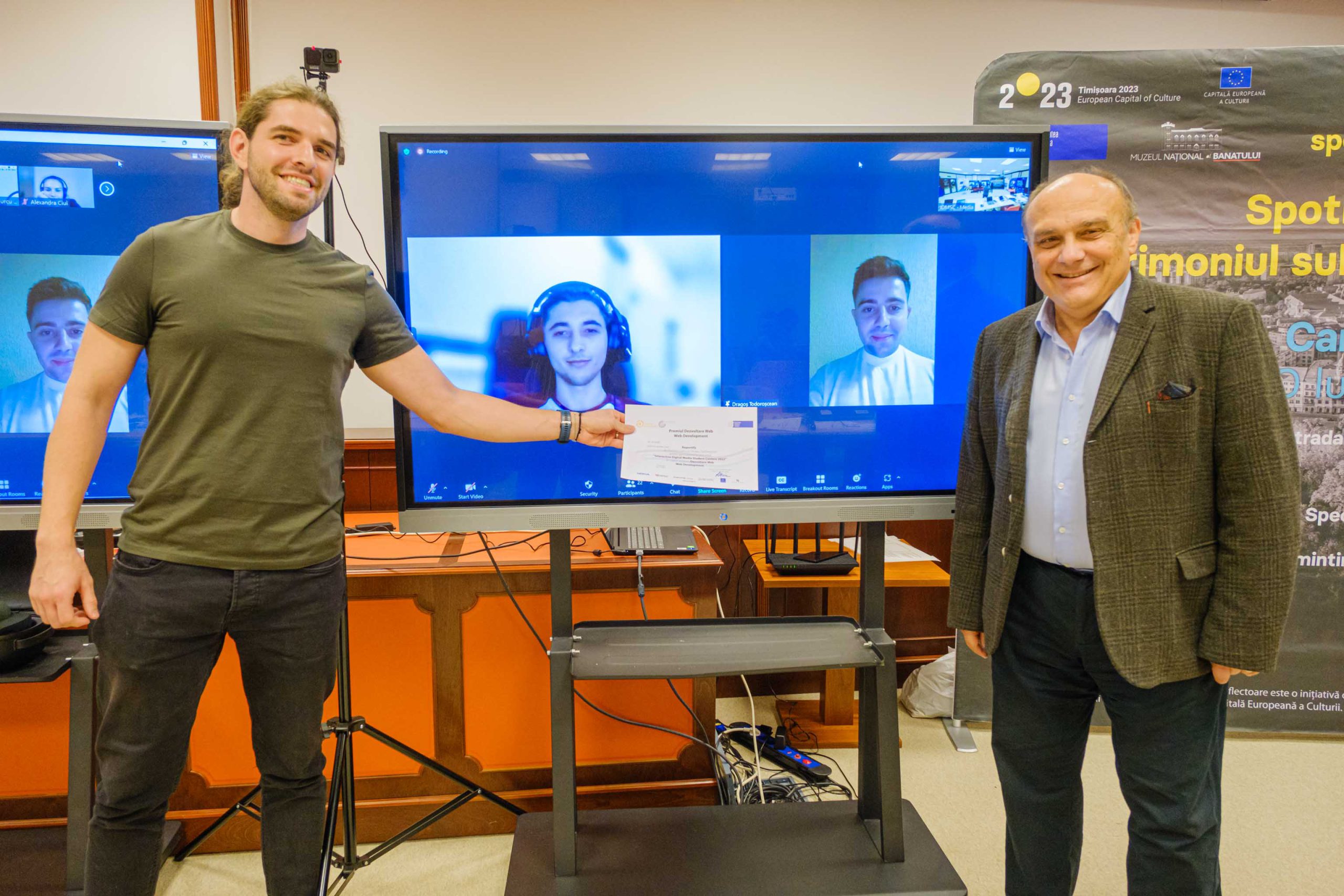 • Cele trei premii pentru noua secțiune International Spotlight Heritage Student Contest (eXtended Reality) au fost oferite de către inițiatorul proiectului Patrimoniul sub Reflectoare Timișoara/Spotlight Heritage Timișoara, proiect co-finanțat de Centrul de Proiecte al Municipiului Timişoara și Consiliul Județean Timiș și au mers către următoarele proiecte care au dezvoltat aplicații de povestire digitală în realitate virtuală și realitate augmentată: