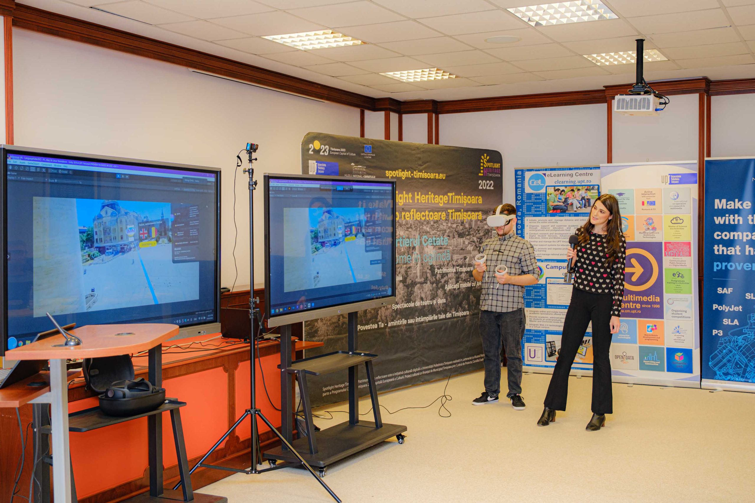 Dr.ing. Diana Andone, directorul CeL al UPT, a continuat cu o prezentare a proiectului Patrimoniul sub Reflectoare Timișoara/Spotlight Heritage Timișoara, care organizează secțiunea International Spotlight Heritage Student Contest (eXtended Reality).