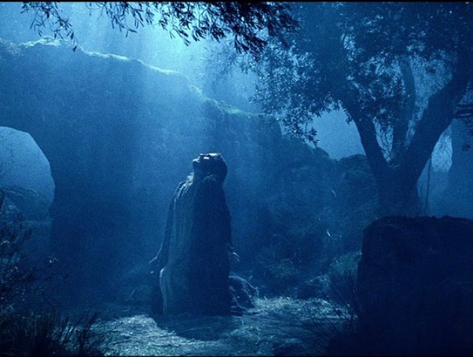 Deodată se auzi un mare strigăt, ce venea de pe Golgota, care părea că este adus de vânt şi care anunţa o agonie pe care urechea omenească, n-a mai auzit-o vreodată. Nori mari, întunecoşi şi negri s-au coborât şi au acoperit aripa templului, şi aşezându-se asupra oraşului, l-a acoperit ca un val, şi un puternic cutremur de pământ a zguduit totul.