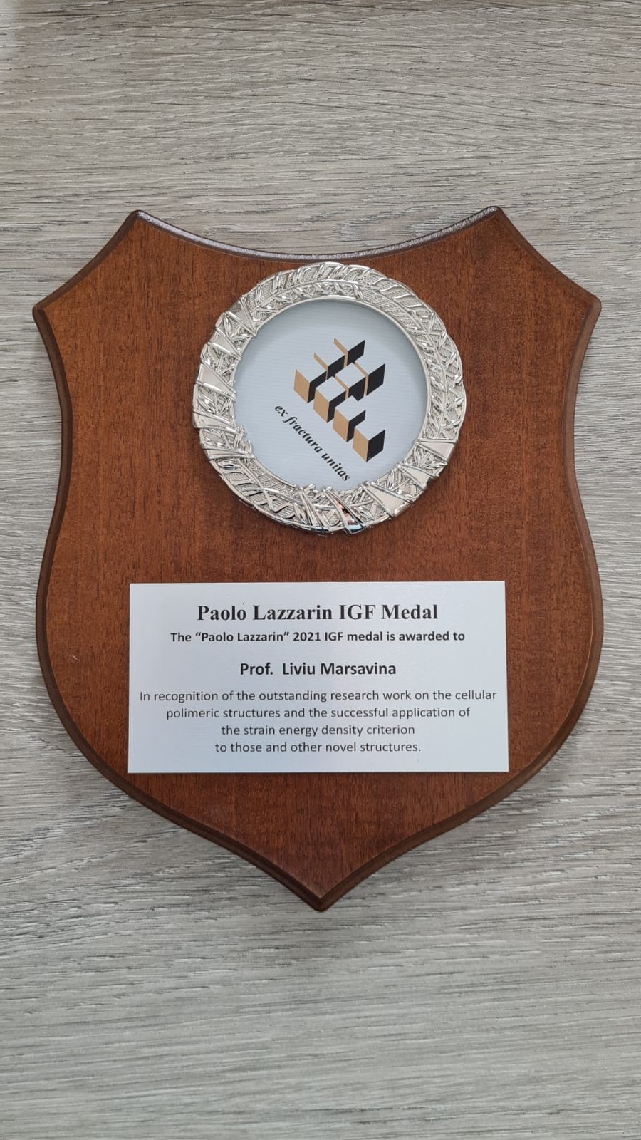 Recent, Asociația Italian Group of Fracture (IGF) a conferit profesorului Liviu MARȘAVINA, prorector al Universității Politehnica Timișoara și membru corespondent al Academiei Române Medalia „Paolo Lazzarin”, ca o recunoaștere a cercetărilor remarcabile privind caracterizarea materialelor celulare polimerice și aplicarea cu succes a criteriului energiei specifice de deformație la aprecierea ruperii acestor materiale.