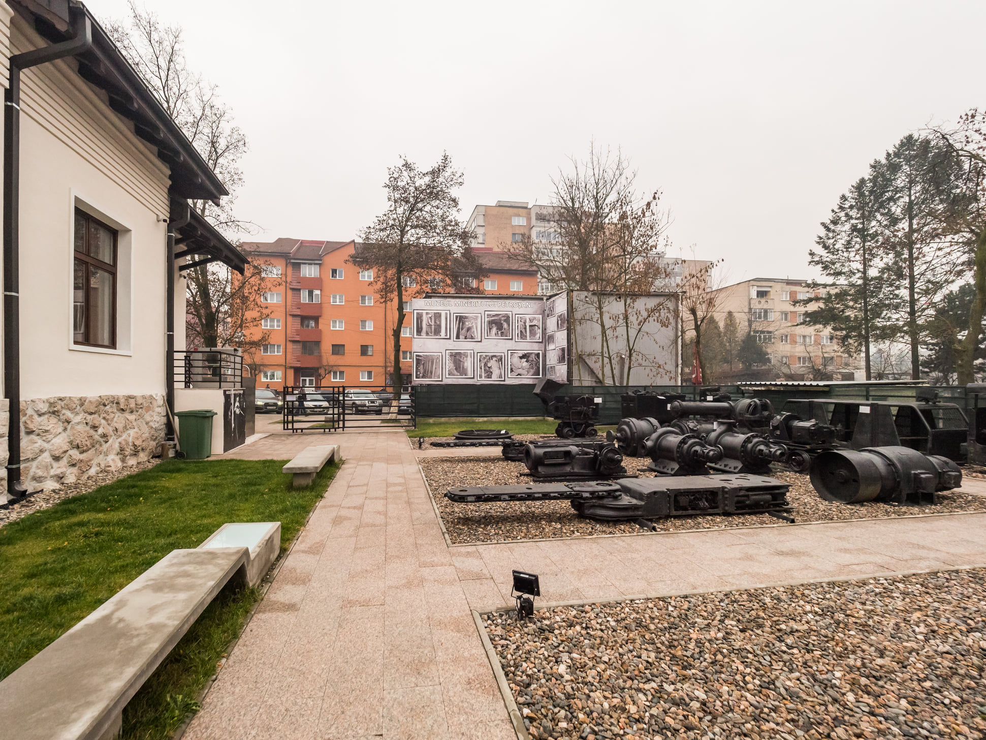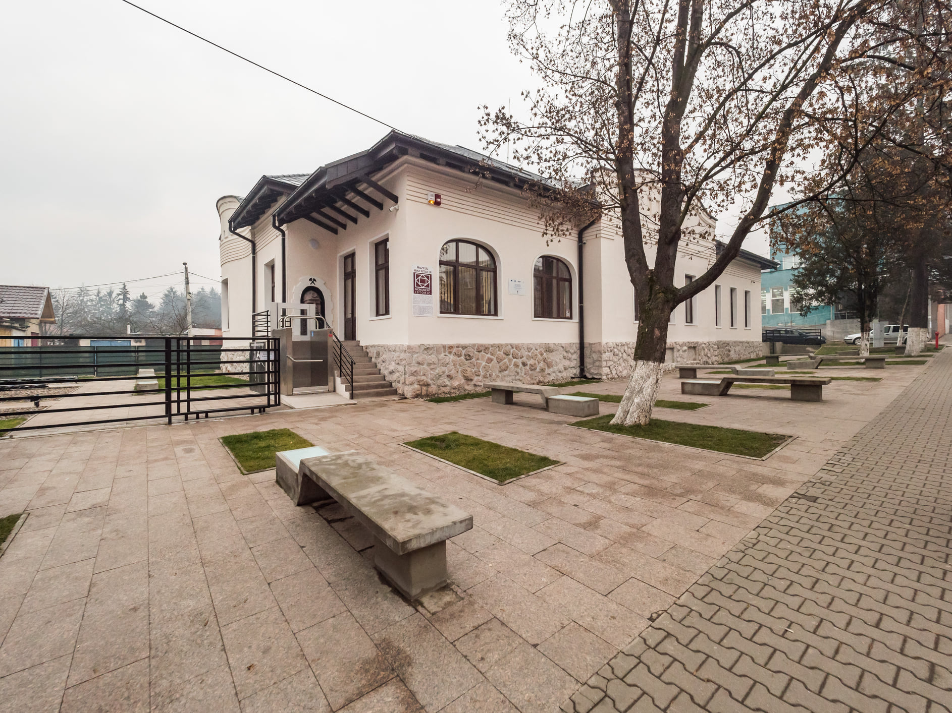 – amenajarea zonei exterioare – alei, trotuare, spații verzi, realizarea unei platforme betonate pentru prezentarea de exponate și un spațiu tip piațetă în fața clădirii.