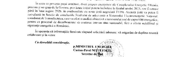 „Solicităm instituțiilor Uniunii Europene: monitorizarea modului în care România aplică principiul „no one left behind” în procesul de tranziție energetică; condiționarea finanțărilor europene de existența unor măsuri reale de protecție socială pentru salariații afectați; sprijin direct pentru implementarea unor mecanisme de protecție similare celor aplicate în alte state membre; dialog direct cu reprezentanții salariaților afectați”, se arată în mesajul angajaților din CEO.
