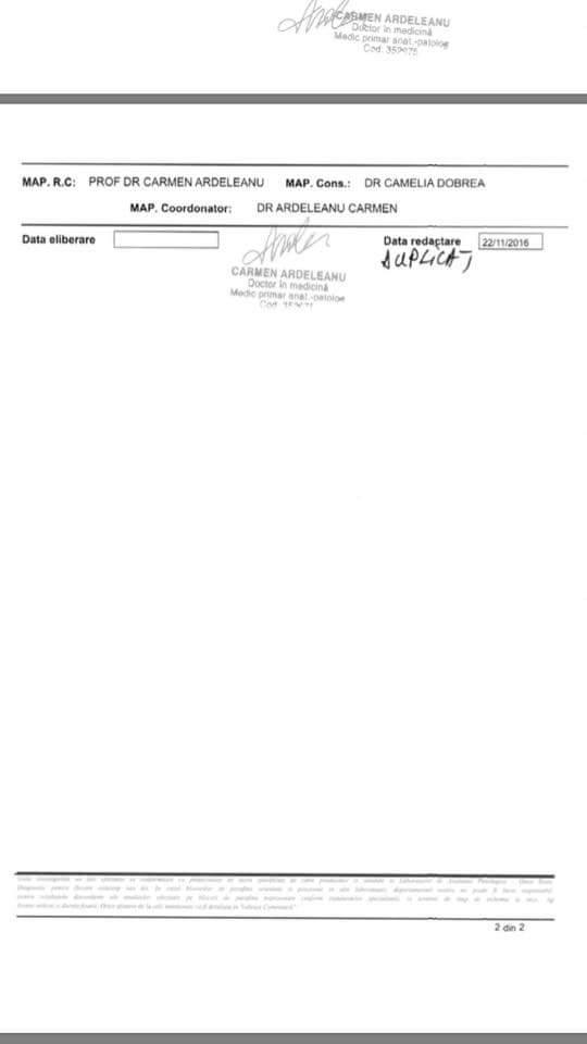 O prietena de familie care este si medic la Targoviste , ne-a recomandat sa i se faca o interventie chirurgicala pentru prelevarea unor probe, cu care ulterior am mers personal la laboratorul Spitalului Monza.