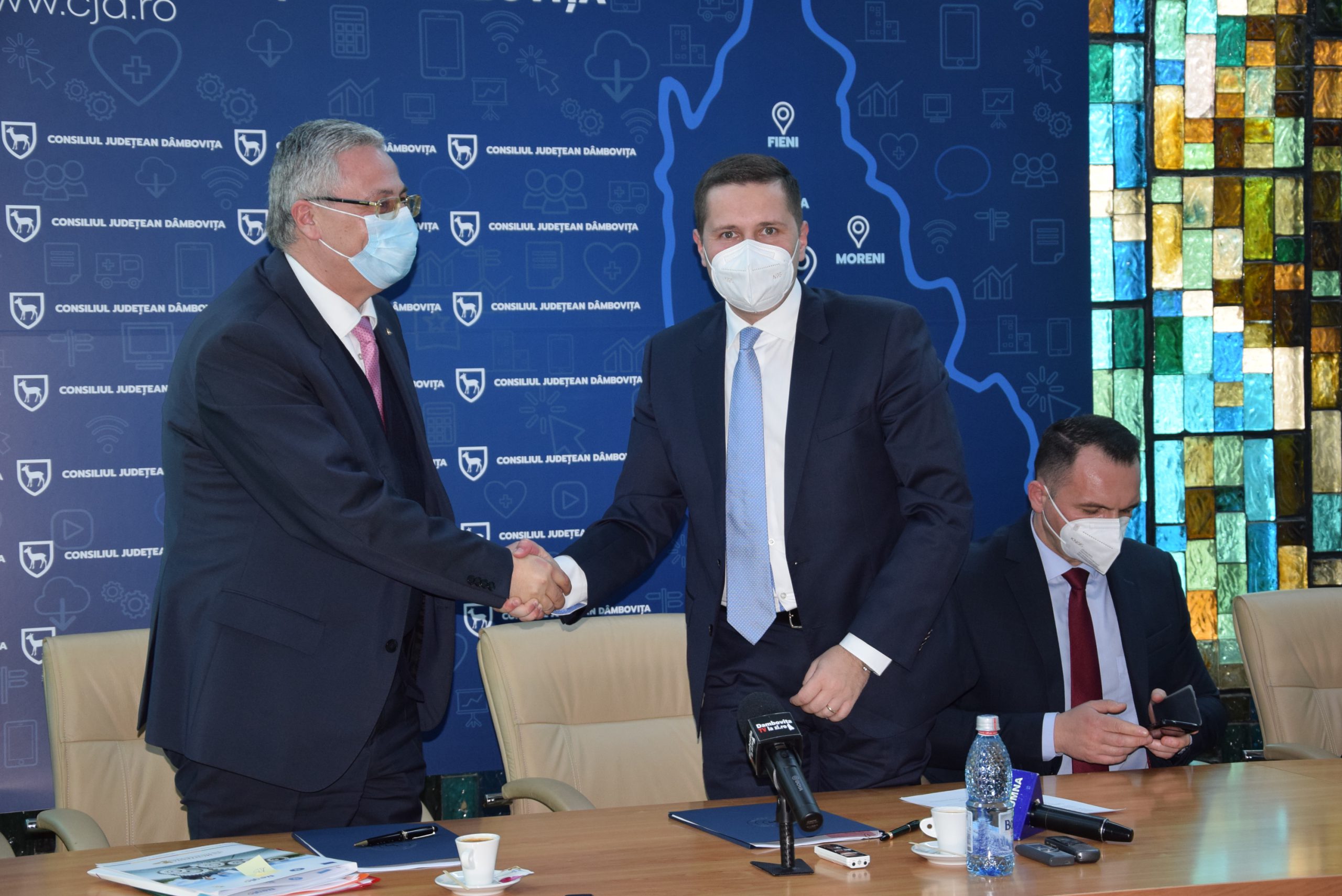 Contractul de finanțare al proiectului s-a semnat astăzi, 24 februarie 2021, între președintele Consiliului Județean Dâmbovița (CJD), Corneliu Ștefan, și directorul Agenției de Dezvoltare Regională Sud Muntenia, Liviu Mușat.