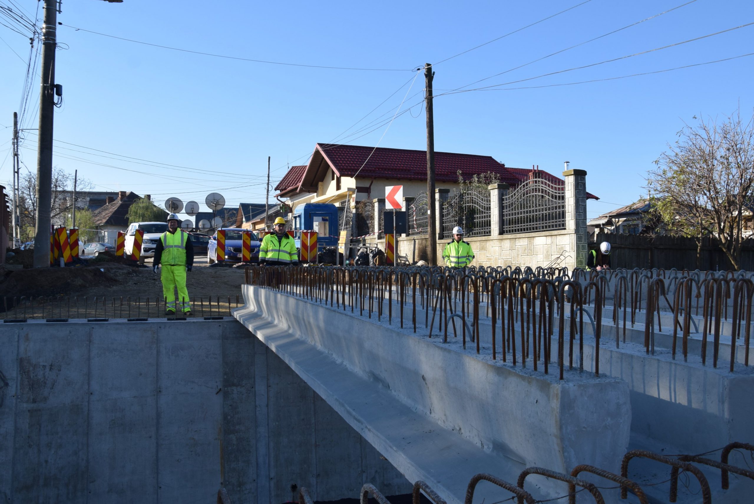 Se lucrează în ritm susținut la podul peste pârâul Racovița, la Băleni