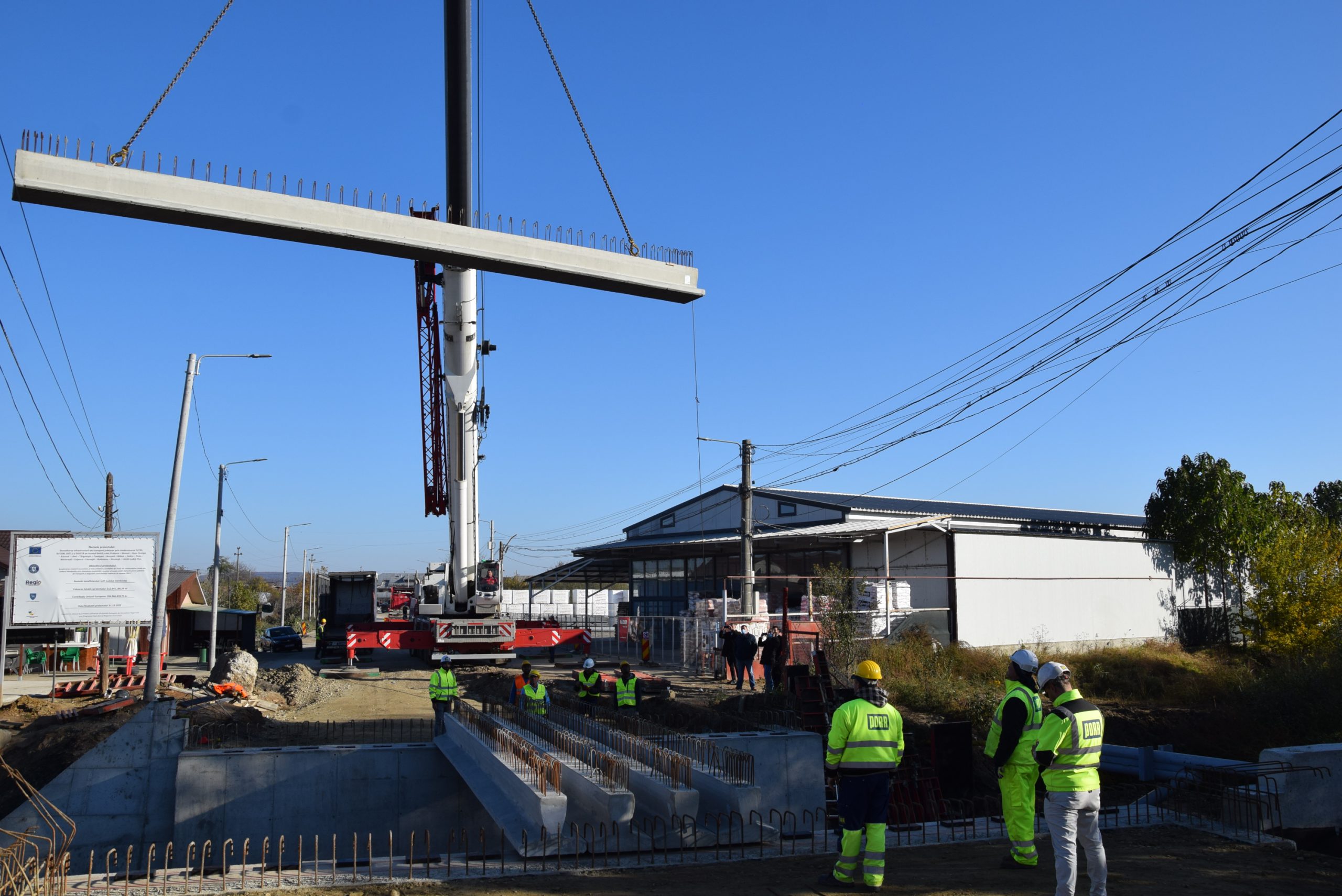 Astăzi au demarat lucrările de montare a grinzilor principale la podul peste pârâul Racovița, din comuna Băleni. Mobilizarea de șantier este bună, iar activitatea se desfășoară conform graficelor convenite cu constructorul.