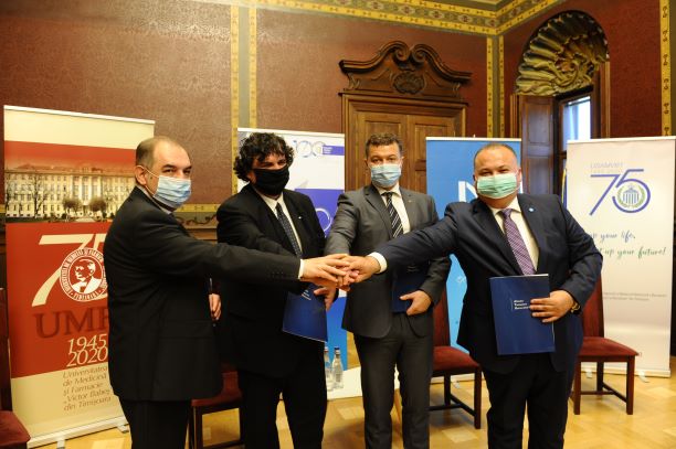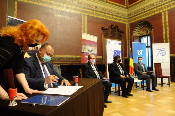 Vineri, 19 iunie 2020, în cadrul special al Sălii Baroce din Muzeul de Artă Timișoara, a avut loc Conferința de presă dedicată ceremoniei de semnare a Acordului de Parteneriat privind constituirea Alianței Timișoara Universitară (ATU), prima structură de cooperare și consolidare a centrului universitar și a platformei de cercetare, dezvoltare și inovare științifică din Timișoara, care își propune să contribuie în mod relevant, printr-o strategie comună a celor patru universități publice din orașul nostru, la devenirea Timișoarei ca pol de referință pentru Europa centrală și de Est. La conferința de presă au participat rectorii celor patru universități semnatare: prof. univ. dr. Octavian CREȚU, rector al Universității de Medicină și Farmacie „Victor Babeș” din Timișoara, conf. univ. dr. Florin DRĂGAN, rector al Universității Politehnica Timișoara, prof. univ. dr. Marilen Gabriel PIRTEA, rector al Universității de Vest din Timișoara, și prof. univ. dr. Cosmin Alin POPESCU, rector al Universității de Științe Agricole și Medicină Veterinară a Banatului „Regele Mihai I al României”. Pozițiile publice exprimate de participanți, în preambulul ceremoniei de semnare a Acordului de Parteneriat privind constituirea Alianței Timișoara Universitară (ATU), au subliniat solidaritatea universitară timișoreană, o valoare recunoscută de cele patru universtăți membre ale ATU, dedicată efortului inovator de a fructifica rezultatele cunoașterii științifice, ale cercetării, creației artistice și performanței, pentru dezideratul public al dezvoltării orașului nostru. Rectorul Universității de Medicină și Farmacie „Victor Babeș” din Timișoara, prof. univ. dr. Octavian CREȚU, a declarat: „Ne bucuram pentru realizarea unirii comunitatii academice timisorene intrun deziderat comun, dorinta exprimata de ceva vreme, ca universitati independente sa poata colabora inteligent si eficient. Desi din domenii diferite, cele patru universitati semnatare am gasit puncte si obiective comune, concretizabile in proiecte de cercetare si utilizarea in mod complementar a unor facilitati ale fiecarei universitati (biblioteci, biobaza, sali si terenuri sportive). Nu este de neglijat nici impactul pe colaborarea dintre studenti, fie de nivel licenta, master sau doctoranzi si, deasemenea intre organizatiile studentesti, in domeniu stiintific, sportiv, social sau artistic.Pentru viitorul nostru este esentiala posibilitatea ca universitatile noastre asociate sa raspunda mai bine cerintelor de acreditare internationala si sa fim mai deschisi catre autoritatile locale si judetene, carora le oferim know-how in vederea dezvoltarii inteligente a orasului si regiunii noastre”. Rectorul Universității Politehnica Timișoara, conf. univ. dr. Florin DRĂGAN, a declarat: „Astăzi, aici, nu e vorba de un rector sau altul, de un demers personal sau de imagine al cuiva. Dacă facem greșeala să venim cu această viziune finită, jocul se va transforma într-unul finit, unul dintre noi va câștiga mai mult sau mai puțin, spectatorii vor aplauda dar peste o perioadă scurtă se va așterne tăcerea. Un joc infinit presupune de acum construirea unui hub de interconectare cu companiile în care Politehnica poate oferi o platforma solidă bazată pe inginerie, în care putem construi centre puternice de cercetare bazate pe robotică, inteligență artificială, cloud computing sau internet of things, în care putem inova în actul didactic împreună sau putem accesa importantele fonduri de dezvoltare din zona medicinii sau agriculturii”. Rectorul UVT, prof.univ.dr. Marilen Pirtea, a declarat: „Sunt deosebit de onorat și mă simt cu totul angajat în acest demers public extrem de inovator, acela de a reuni forțele celor patru universități publice timișorene într-o concentrare de valori ale centrului universitar timișorean. De astăzi, noi toți, împreună, aproape 5000 de dascăli, cercetători și experți universitari, alături de 35 de mii de studenți, suntem mai conștienți de misiunea publică pe care o avem, aceea de a face realizabile cele mai bune opțiuni de dezvoltare ale Timișoarei, alături de administrație și mediul de afaceri, într-o relație consacrată în tot spațiul european, în care mediul universitar joacă un rol central. De astăzi, noi toți, suntem mai ambițioși, mai generoși față de comunitatea noastră și mai responsabili față de generațiile viitoare”. Rectorul Universității de Științe Agricole și Medicină Veterinară a Banatului „Regele Mihai I al României”, prof. univ. dr. Cosmin Alin POPESCU, a declarat: „Evenimentul de astăzi marchează în premieră, prin semnarea acestui act de solidaritate și colaborare între cele patru universități publice din Timișoara, un simbol al unității și altruismului dedicat orașului de pe Bega, județului Timiș și întregii regiuni. În mod clar, acest proiect este susținut de întreaga comunitate academică a Universității de Științe Agricole și Medicină Veterinară a Banatului „Regele Mihai I al României” din Timișoara, prin studenții și dascălii ei și în egală măsură prin alumnii acesteia. Mesajul nostru se adresează cu maturitate și profesionalism angajatorilor prezenți pe piața muncii în orașul şi județul nostru, în mod concret susținem cercetarea, inovarea – transferul tehnologic şi extensia universitară cu implicații directe în dezvoltarea sustenabilă a economiei locale și regionale. Credem în acest proiect, suntem parteneri activi în astfel de demersuri pentru întregul mediu socio-economic existent și prin mesajul transmis de noi demonstrăm CĂ NE PASĂ!”. Organizatoric, alianța și-a structurat în mod foarte clar maniera de funcționare și conducere. Astfel, conducerea alianței este asigurată de Adunarea Generală și de către Consiliul Director, iar Adunarea Generală este