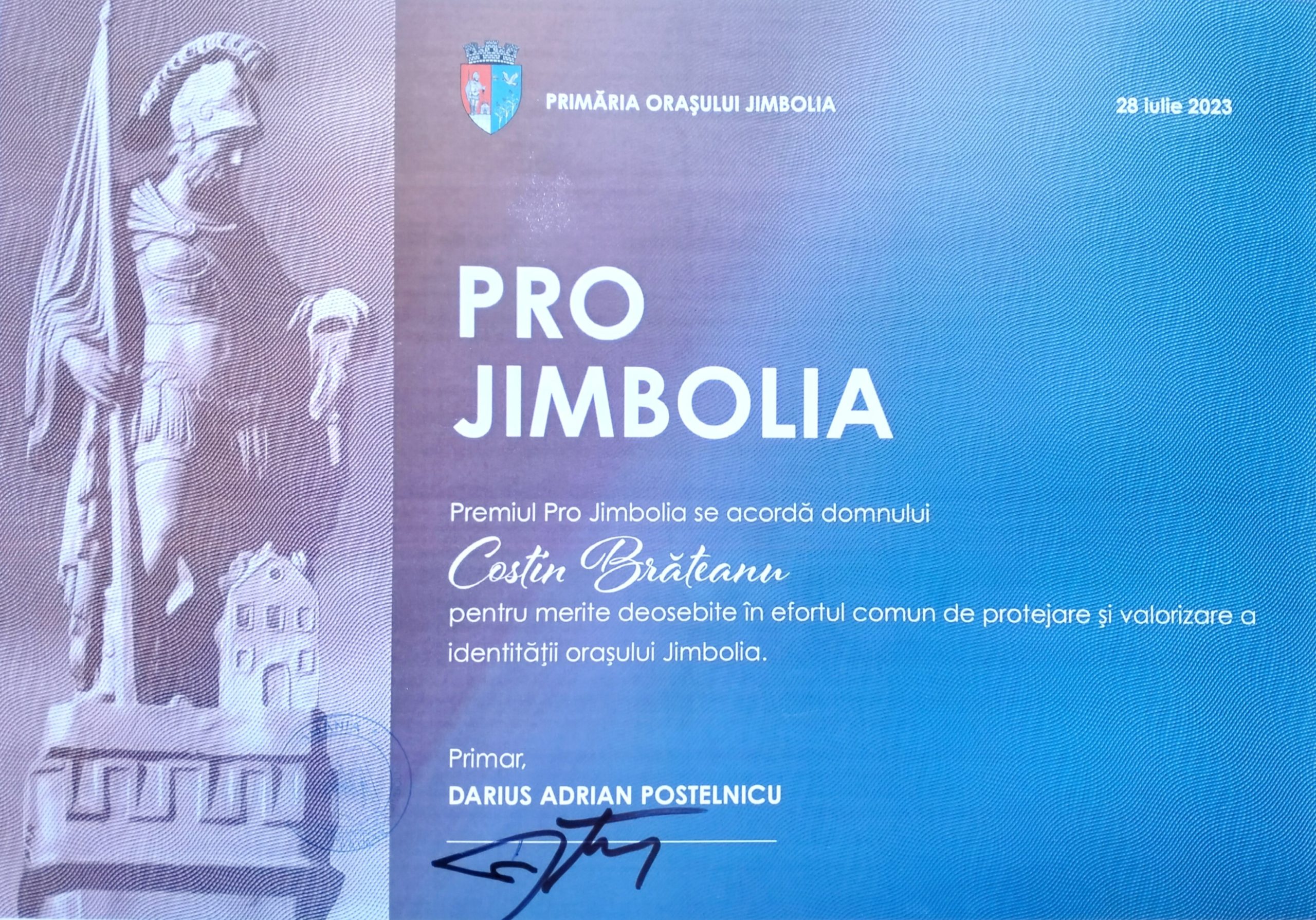 În 28 iulie 2023, de la ora 10.00, în cadrul deschiderii Festivalului „Zilele Jimboliene”, a avut loc vernisarea lucrărilor realizate în cea de-a XI-a ediție a Simpozionului Internațional de Artă „Stefan Jäger”. Întreaga acțiunea a fost organizată de Casa de Cultură a Orașului Jimbolia, fiind susținută de Primăria și Consiliul Local Jimbolia. Ĩn cadrul manifestării, în prezența unui numeros public, au fost distinşi cu premiul PRO JIMBOLIA, importante personalităti locale cât şi artiştii vizuali Theophil Soltesz, Angelica Chici, Tar Béla şi Costin Brăteanu, pentru merite deosebite în efortul comun de protejare şi valorizare a identității oraşului Jimbolia.