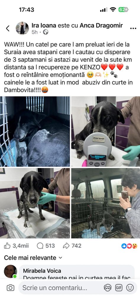 ”Mergeți în control azi în toate lagărele. La Uzunu se ard câinii. Sa nu ziceți ca nu ați știut.Ati știut și ați acceptat.Ne-am îmbolnăvit din cauza voastră. Am intrat în depresie.Care va sunt atribuțiile?Afacerea Maidanezul nu e despre caini, e despre corupție la nivel înalt. Stop uciderii câinilor în adăposturile din România!”
