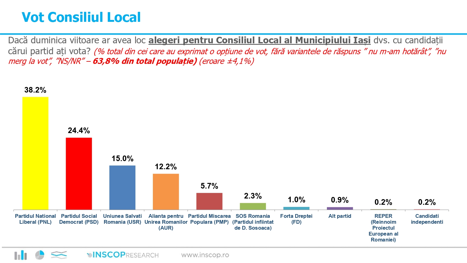Sondaj INSCOP la Iași: În orice scenariu, PNL câștigă detașat la Iași alegerile locale și parlamentare