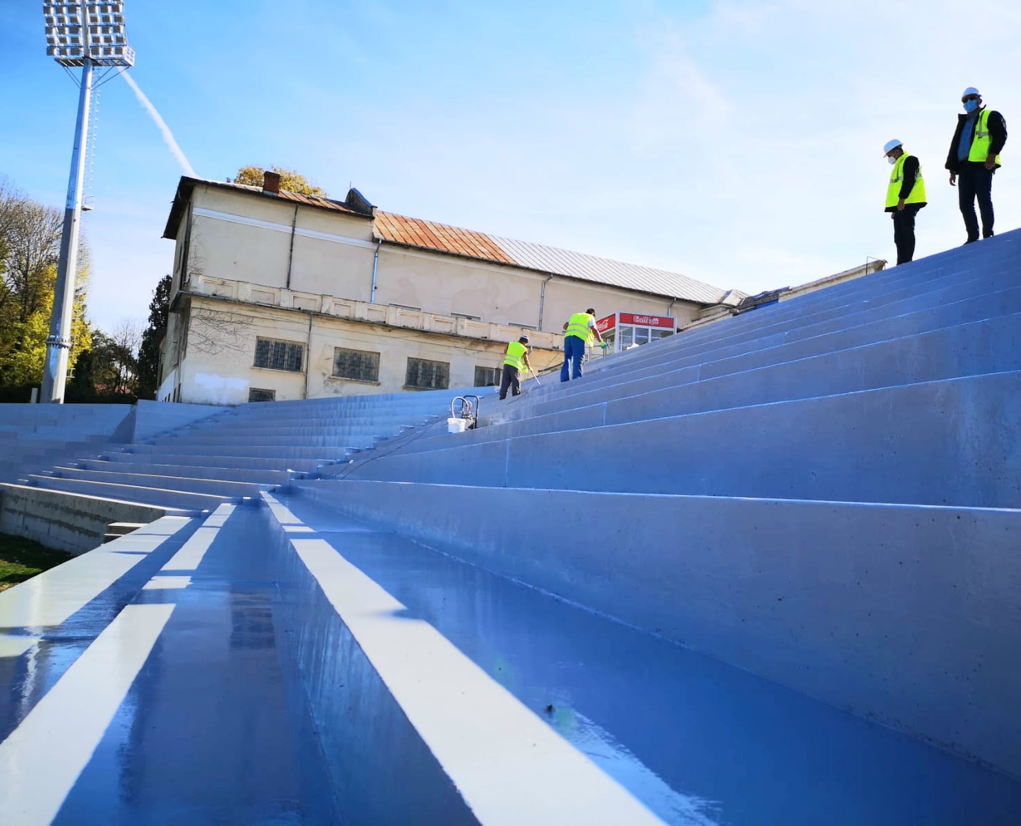 - ”Mai bine de jumătate din tribuna care se reabilitează este acum finalizată, în cel mult 2 săptămâni urmând să înceapă și montarea primelor scaune noi, în condițiile în care a fost realizată inclusiv hidroizolația. În plus, au fost comandate deja tabelele de marcaj.