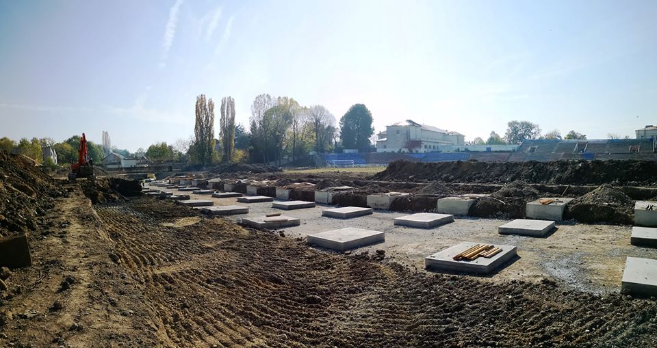 Până în prezent la proiectul de modernizare al stadionului “Eugen Popescu” s-au turnat toate cele 69 de elemente de fundatie pe care vor fi fixati cuzinetii de sustinere a noii tribune; se lucreaza si la fundatia cladirii care intra in structura viitoarei tribune I.