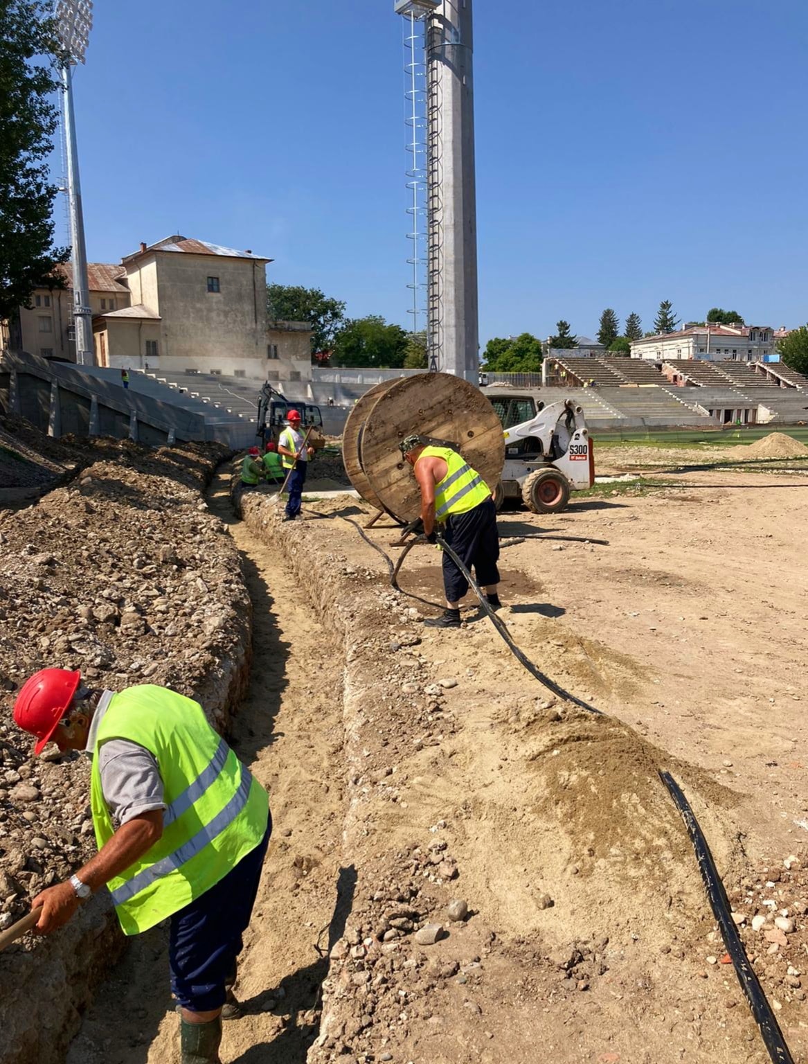 Astăzi, edilul a informat pe pagina de facebook, că se lucrează la rețeaua de alimentare cu energie electrică a instalației de degivrare și a nocturnei și se pregătește tribuna în vederea realizării hidroizolației.