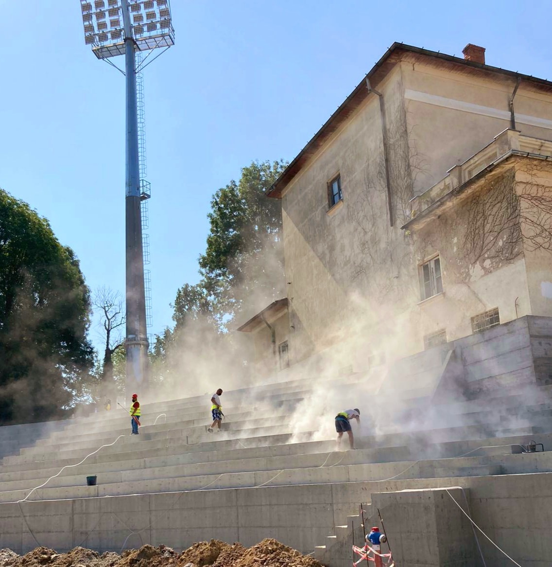- Lucrări la tribuna veche – atât la încăperile de sub tribună, cât și la exterior, la ultimul segment al gradenelor.