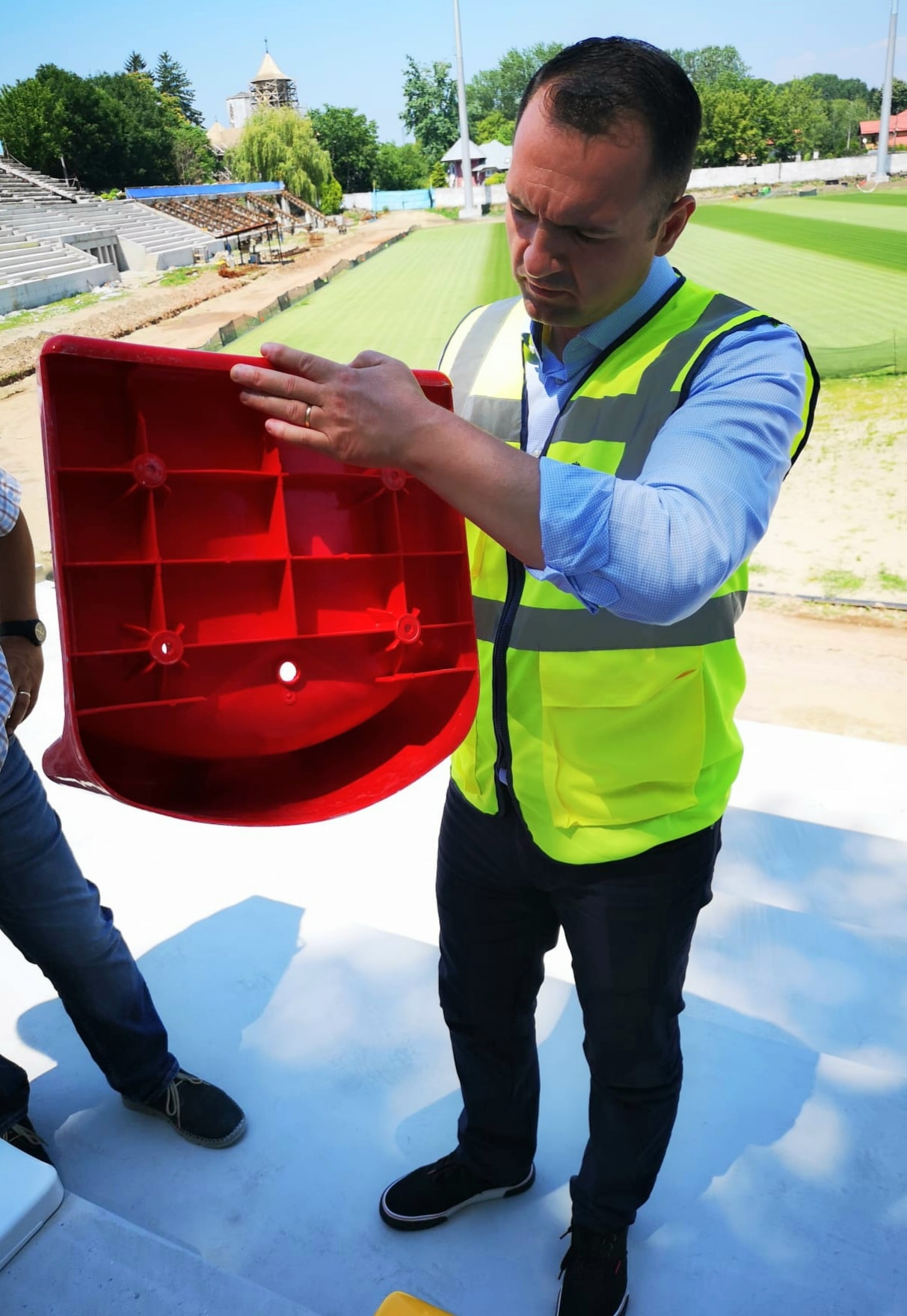 - ”Ca și elemente de noutate, zilele acestea alegem și comandăm noile scaune. Se lucrează în continuare la tribuna veche pe toate fronturile, atât la încăperile de sub tribună, cât și la exterior, la ultimul segment al gradenelor, iar ultimele componente ale tribunei metalice sunt in lucru la furnizor.