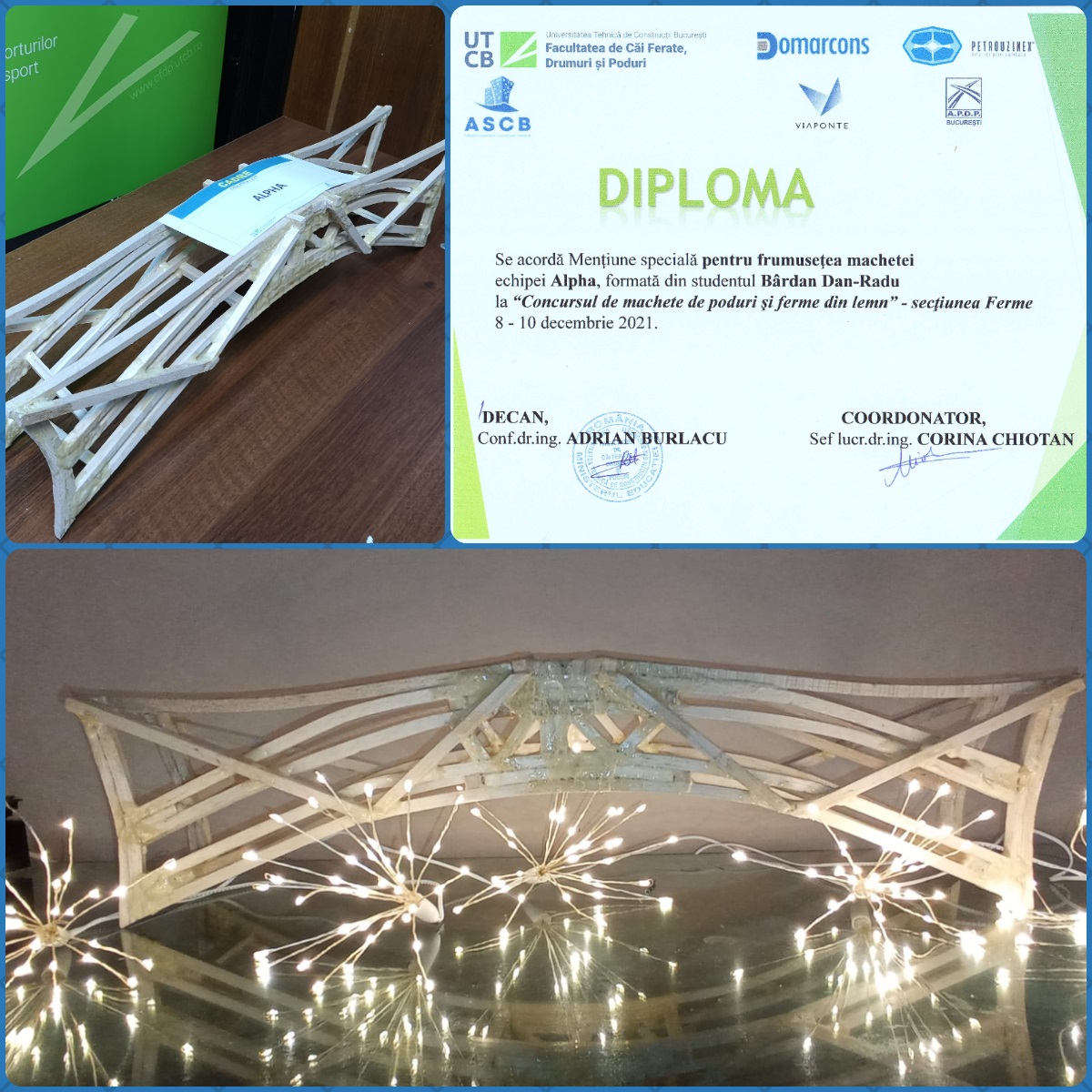 • Echipa „Alpha” – Dan Radu BÂRDAN, anul Il, master Infrastructuri pentru Transporturi (IPT), câștigând mențiune specială pentru „frumusețea machetei – secțiunea Ferme”.