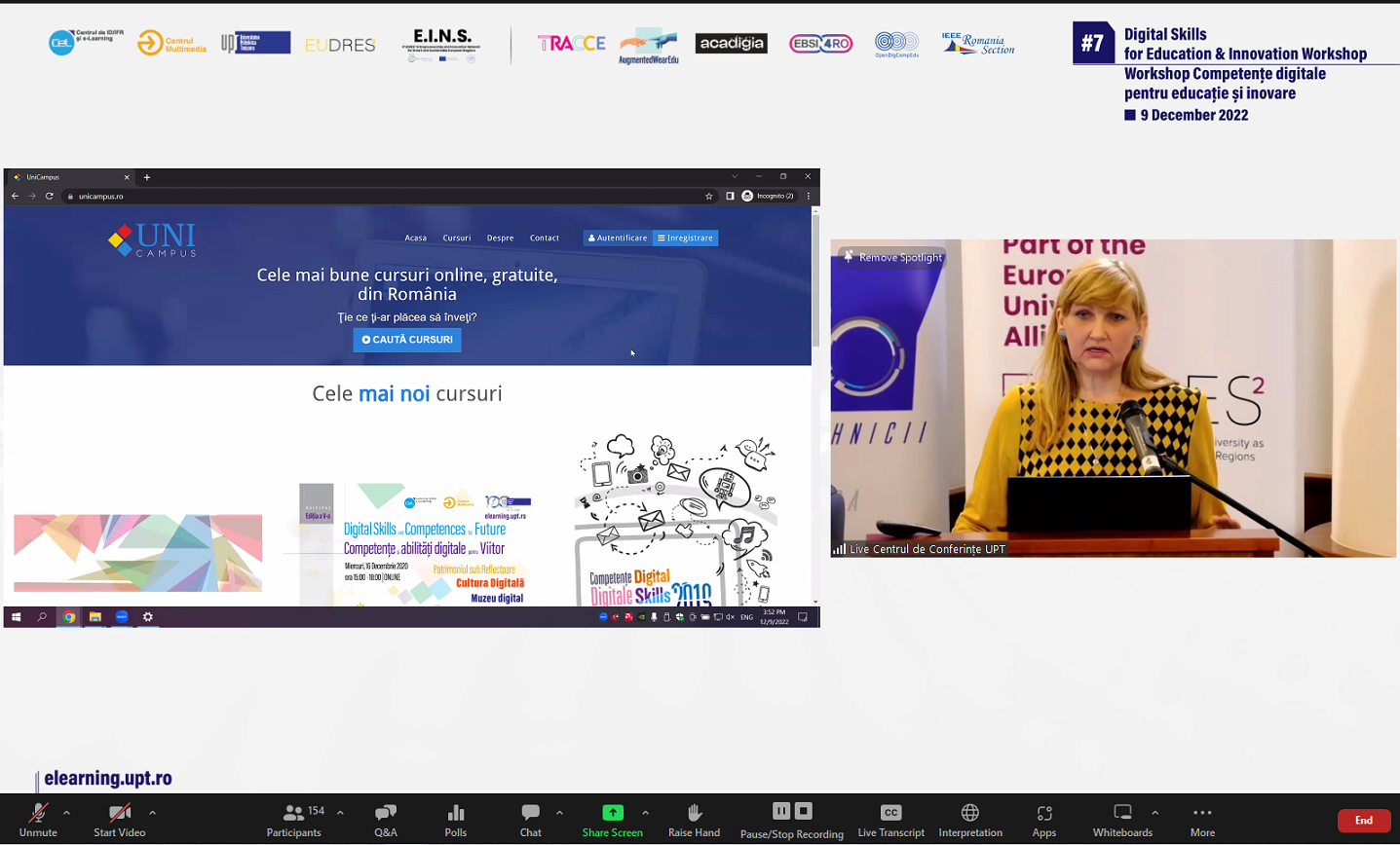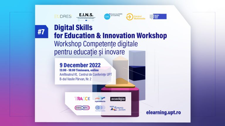 Înregistrarea evenimentului precum și informații suplimentare despre temele dezbătute și prezentatori sunt disponibile accesând: https://elearning.upt.ro/ro/comunitate/digital-skills-for-education-innovation-international-workshop/