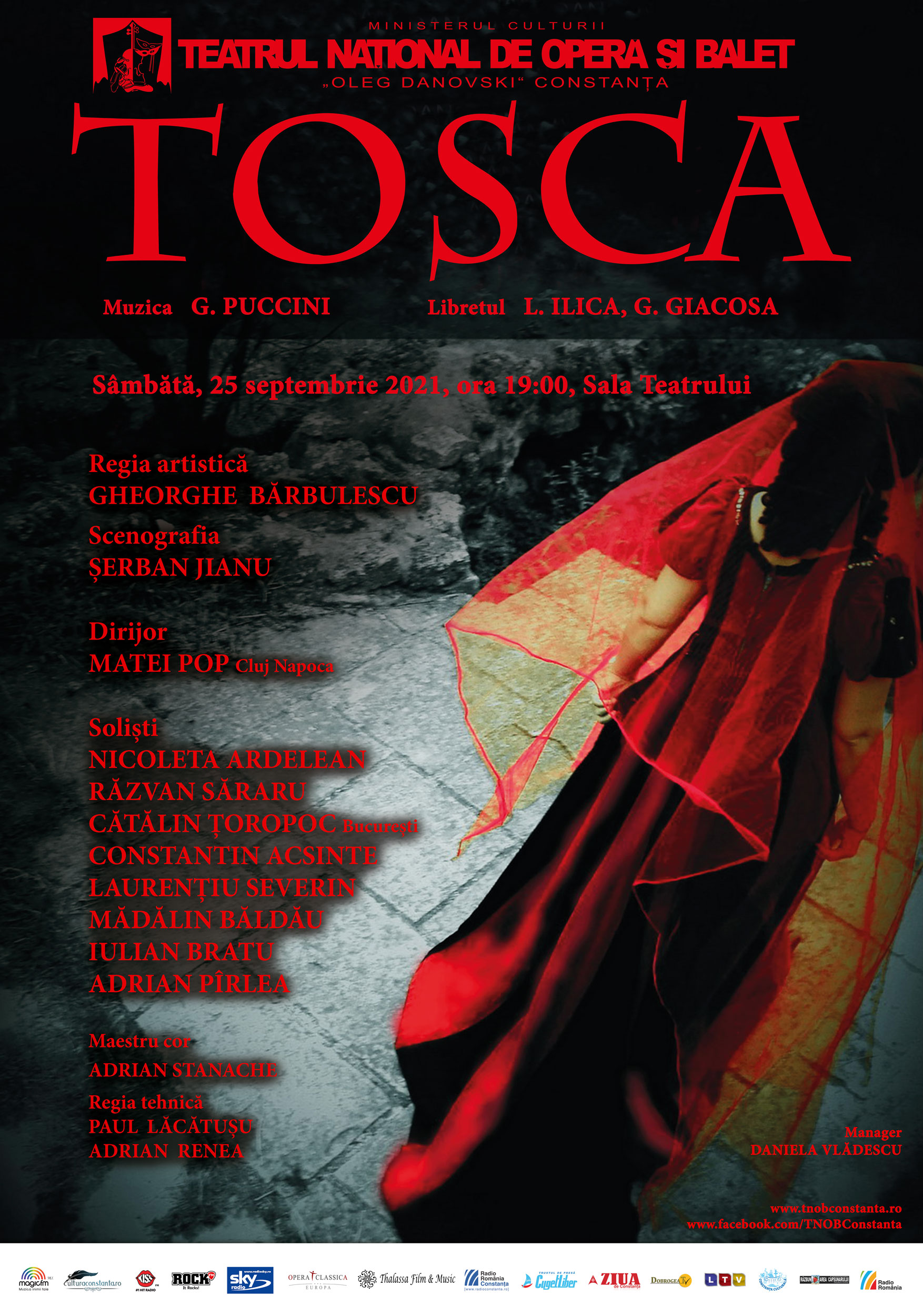 În această săptămână, Teatrul Național de Operă și Balet Oleg Danovski invită publicul constănțean la opera ”Tosca” de G. Puccini. Spectacolul va avea loc sâmbătă, 25 septembrie 2021, începând cu ora 19, în Sala Teatrului.