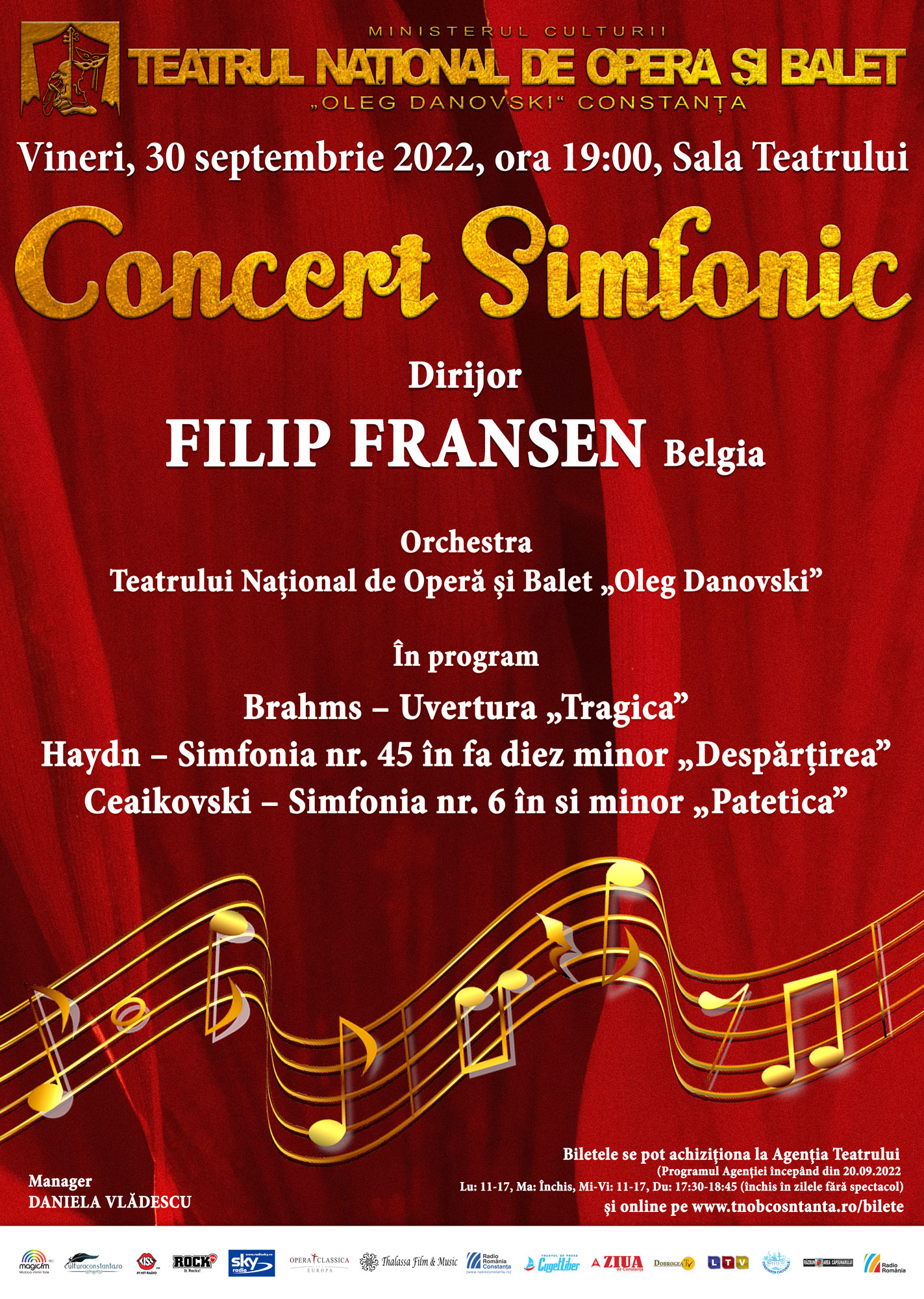 CONCERTUL SIMFONIC va avea loc vineri, 30 septembrie 2022, începând cu ora 19:00 în Sala Teatrului.