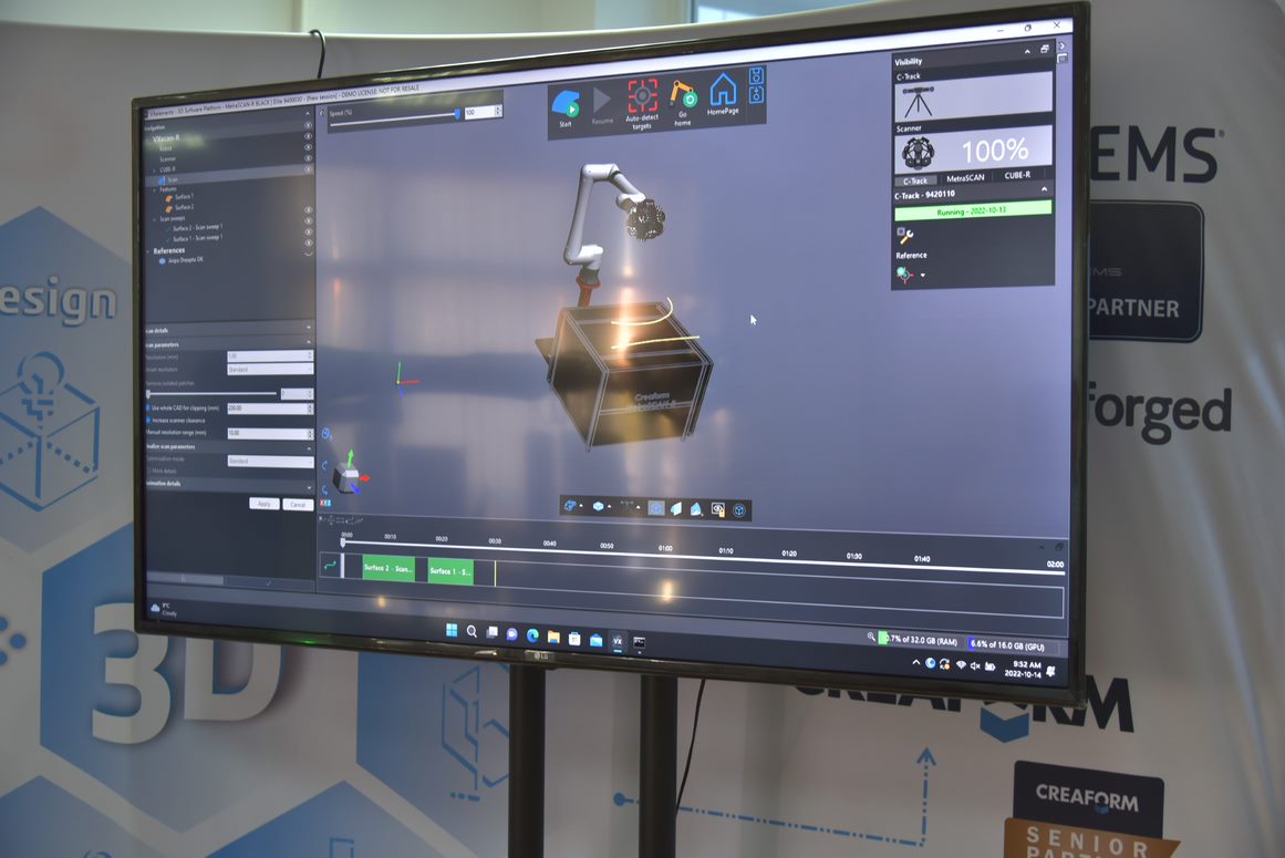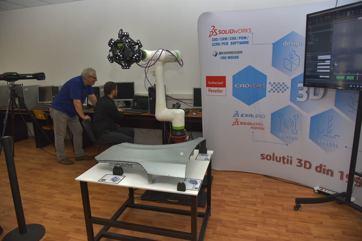 Tot în cadrul seminarului au avut loc și demonstrații practice, cu echipamente de scanare 3D cu braț robotizat, împreună cu softul aferent, ce realizează până la 3 milioane de măsurări pe secundă, putând scana un volum de până la 16 mc.