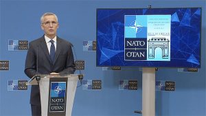 Într-o declarație de presă, secretarul general al NATO Jens Stoltenberg a spus că „NATO va continua să fie alături de Ucraina atât timp cât va fi nevoie. Nu ne vom da înapoi.” El a adăugat că „este în interesul nostru de securitate să sprijinim Ucraina” și a explicat că „nu poate exista pace durabilă dacă agresorul câștigă”. La București, miniștrii de externe ai NATO se vor întâlni cu omologul lor ucrainean Dmytro Kuleba pentru a discuta despre cele mai urgente nevoi ale Ucrainei. Jens Stoltenberg a spus că ”va cere aliaților să ofere mai mult sprijin prin pachetul cuprinzător de asistență al NATO, care furnizează combustibil, consumabile medicale, echipamente de iarnă și dispozitive de bruiaj de drone și a adăugat că NATO va ajuta Ucraina să treacă de la echipamentele din era sovietică, la cele moderne, Standarde, doctrină și instruire NATO pe termen lung. ”Războiul din Ucraina a demonstrat dependența noastră periculoasă de gazul rusesc”, a spus secretarul general, „deci trebuie să ne evaluăm dependența de alte regimuri autoritare, nu în ultimul rând de China”. El a adăugat: „trebuie să gestionăm riscurile, să ne reducem vulnerabilitățile și să ne creștem rezistența”.