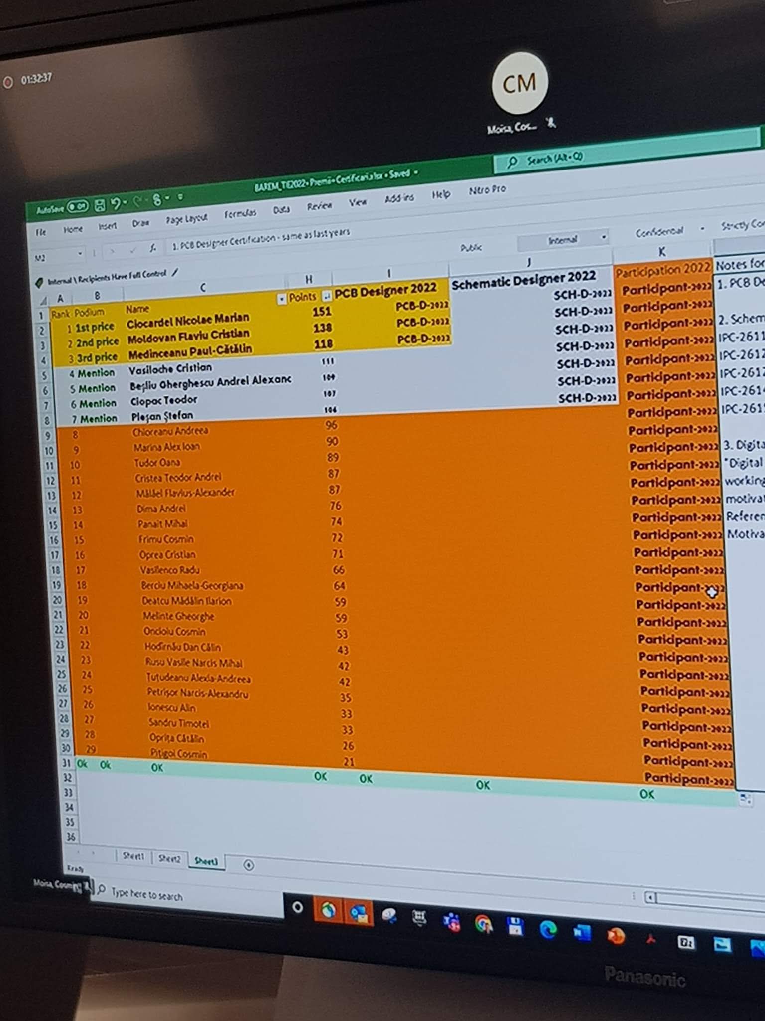 Bazat pe rezultatele din baremele de evaluare, Comitetul Industrial oferă certificate de „Designer PCB”, ca o recunoaștere a nivelului înalt de cunoștințe în domeniul Engineering Design Automation – EDA, pentru dezvoltarea modulelor și ansamblelor electronice și fabricarea lor corectă.