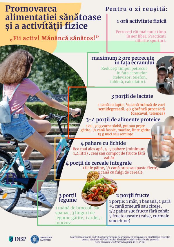 În perioada septembrie-octombrie 2025 la nivel național se derulează campania de informare, educare, comunicare având ca tema promovărea alimentației sănătoase și a activității fizice.