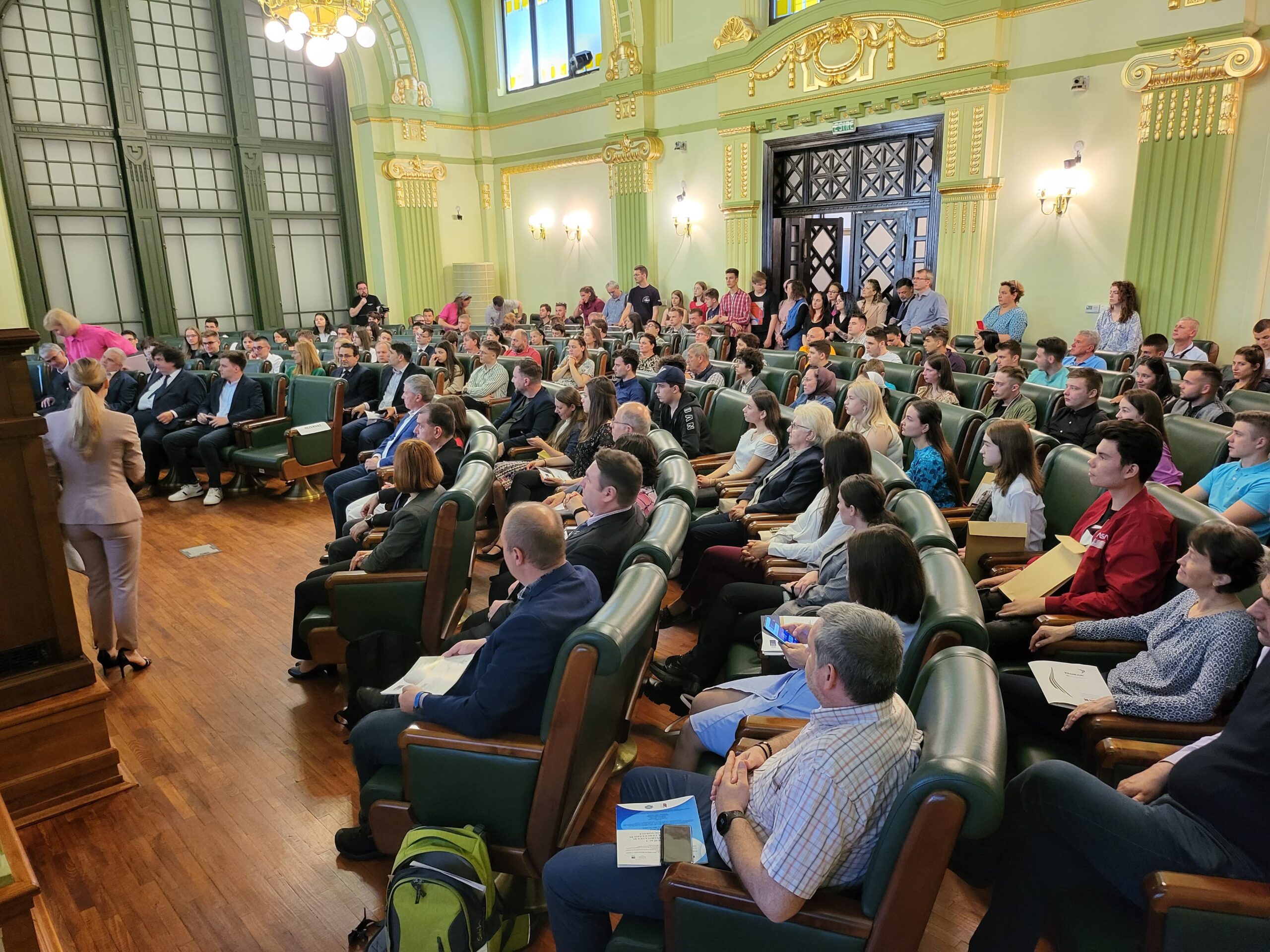 Punctul central al evenimentului, festivitatea de premiere, a avut loc – în prezența conducerii Universității Politehnica Timișoara, a reprezentanților facultăților, a inspectoratelor școlare județene din zona de vest, a unora dintre câștigătorii concursurilor precedente, în prezent studenți ai UPT – în Sala Senatului Universității Politehnica Timișoara, din incinta Rectoratului instituției, un loc încărcat de istorie, în care s-a decis, cu mai bine de un secol în urmă, soarta Banatului și alipirea la Patria-mamă.
