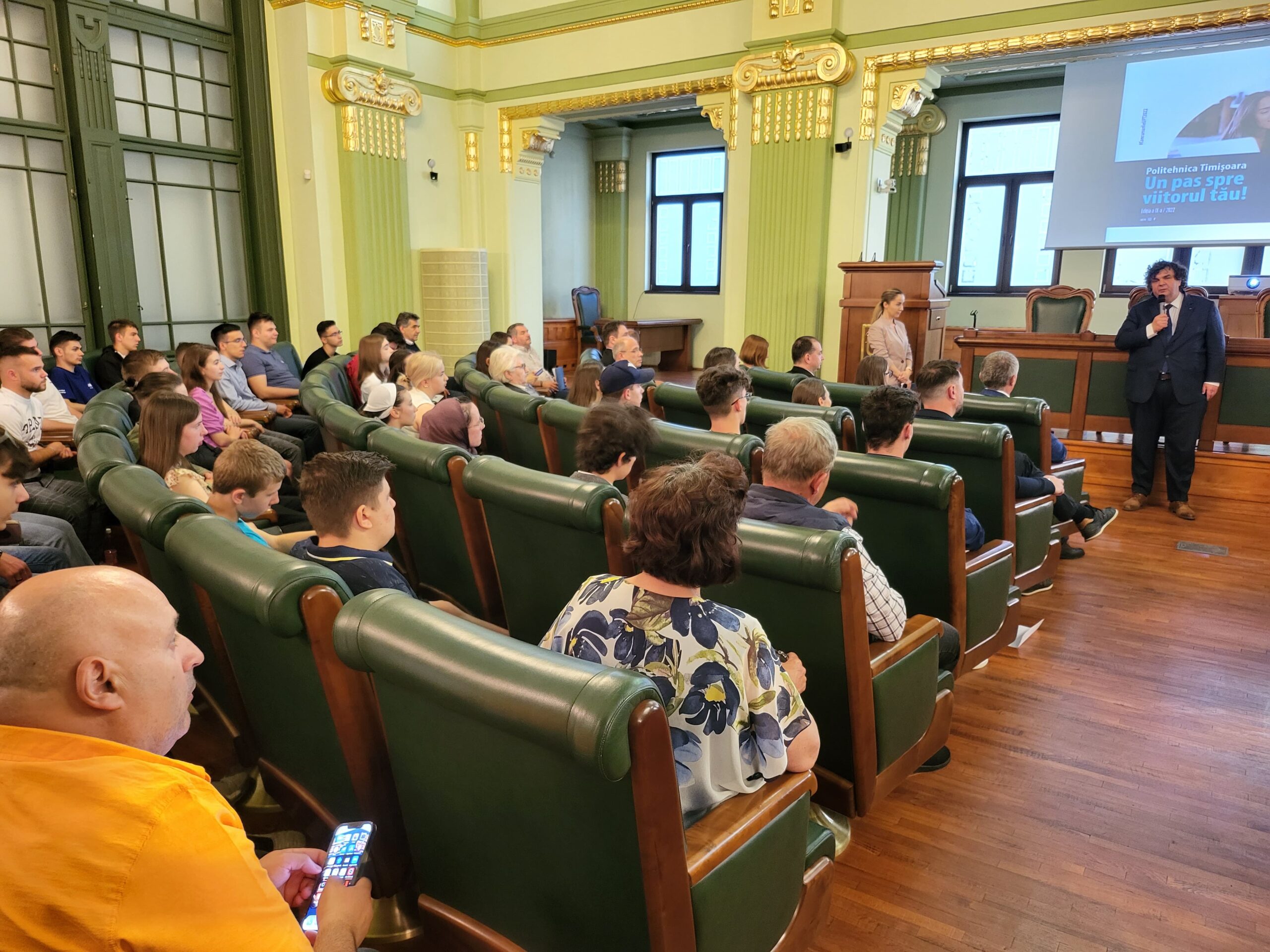 Despre istoria Politehnicii și condițiile care au dus la înființarea primei instituții de învățământ superior din vestul țării, Școala Politehnică din Timișoara, în anul 1920, dar și despre strânsele legături ale acesteia cu administrația și cu mediul economic, de la înființare și până în prezent, a vorbit rectorul UPT, conf.univ.dr.ing. Florin Drăgan. Acesta a prezentat și ce este azi Universitatea Politehnica Timișoara, o instituție cu peste 13.000 de studenți, care pune accentul, pe lângă educație, și pe cercetare, cultură și sport, amintind că Poli este poate cel mai cunoscut brand al Timișoarei. Nu în ultimul rând, rectorul UPT i-a felicitat pe elevi pentru ambiția, cunoștințele și rezultatele acestora, exprimându-și speranța că vor alege Politehnica, mai ales că România are un potențial uriaș pe partea de inginerie și de IT, ceea ce le poate asigura o carieră de succes, după o studenție frumoasă.
