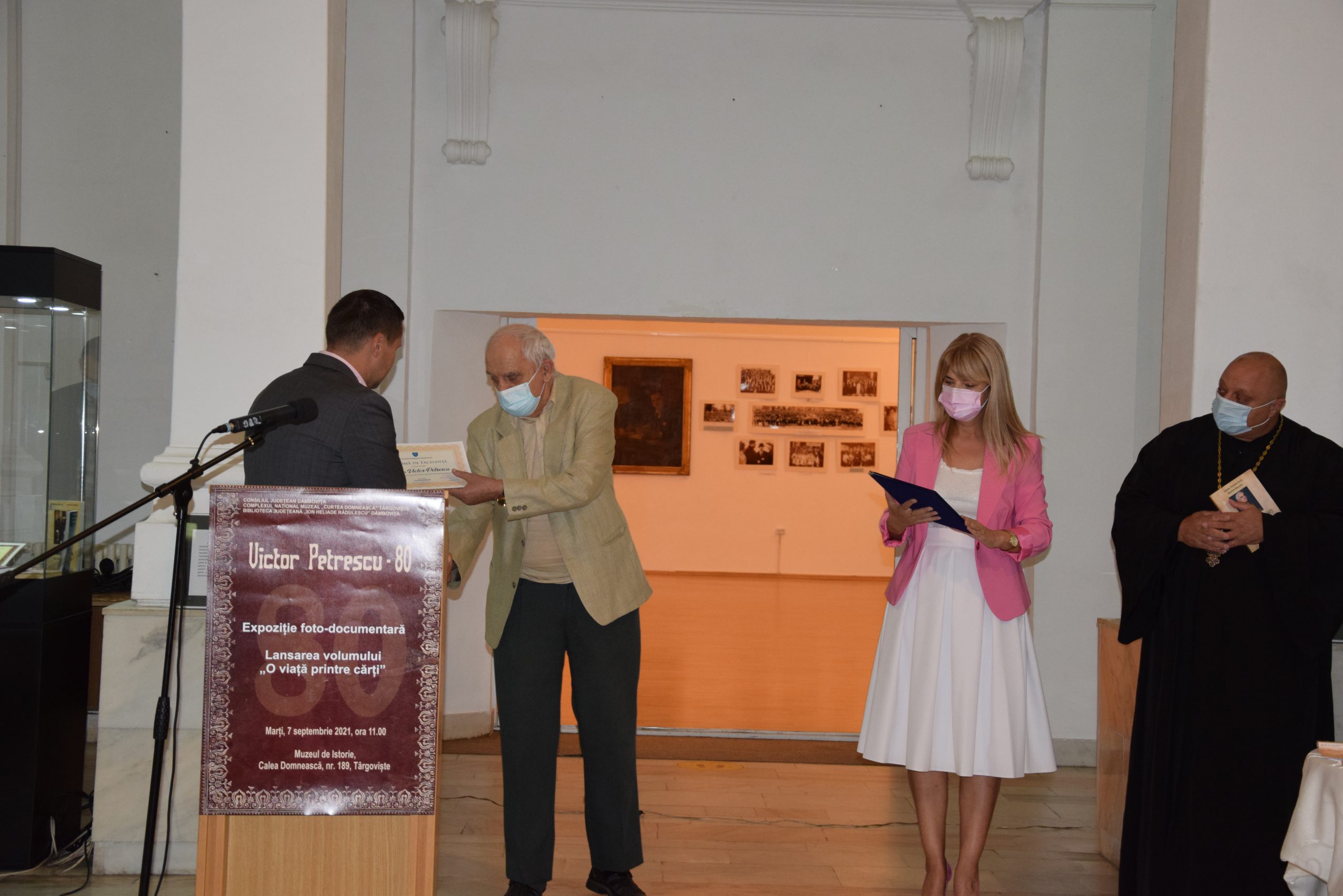 Organizată de Consiliul Județean Dâmbovița, prin Complexul Național Muzeal „Curtea Domnească” Târgoviște și Biblioteca Județeană „Ion Heliade Rădulescu” Dâmbovița, sub genericul „Victor Petrescu – 80”, festivitatea a avut loc la Muzeul de Istorie din municipiul Târgoviște.